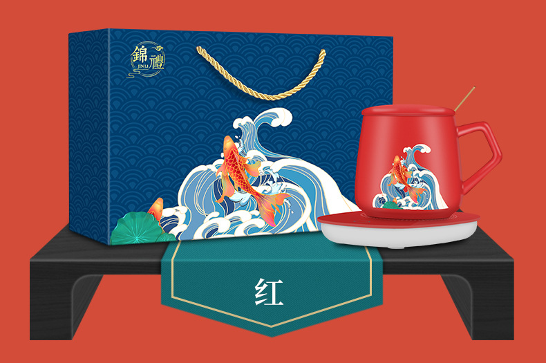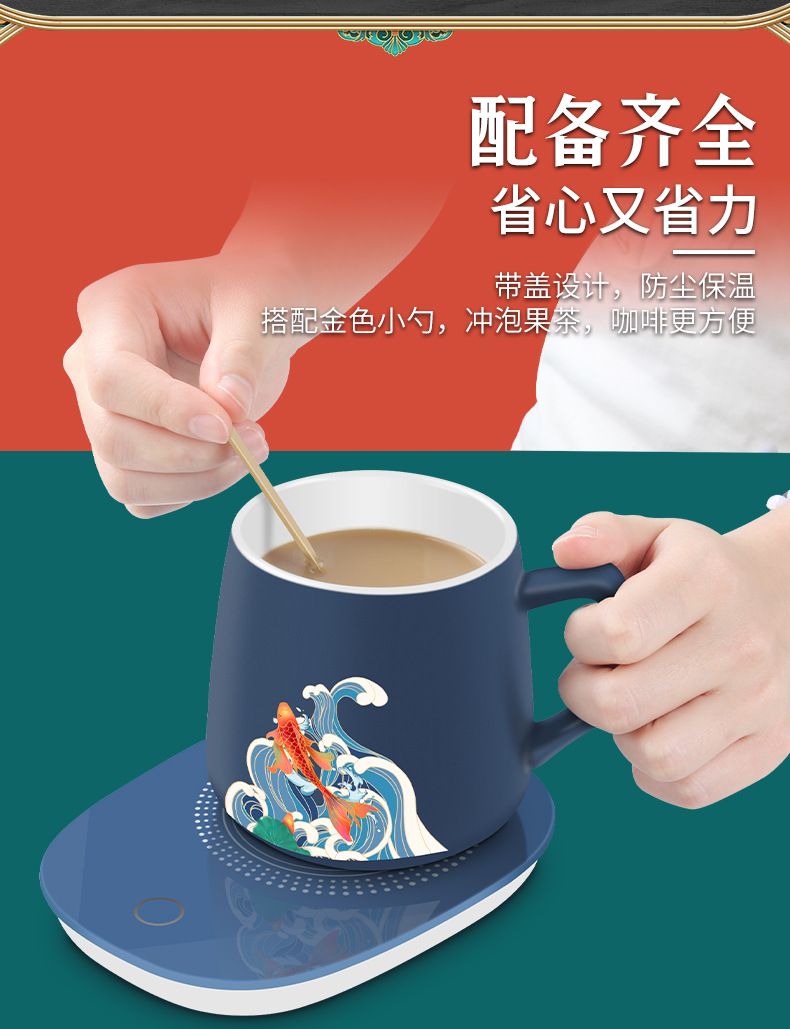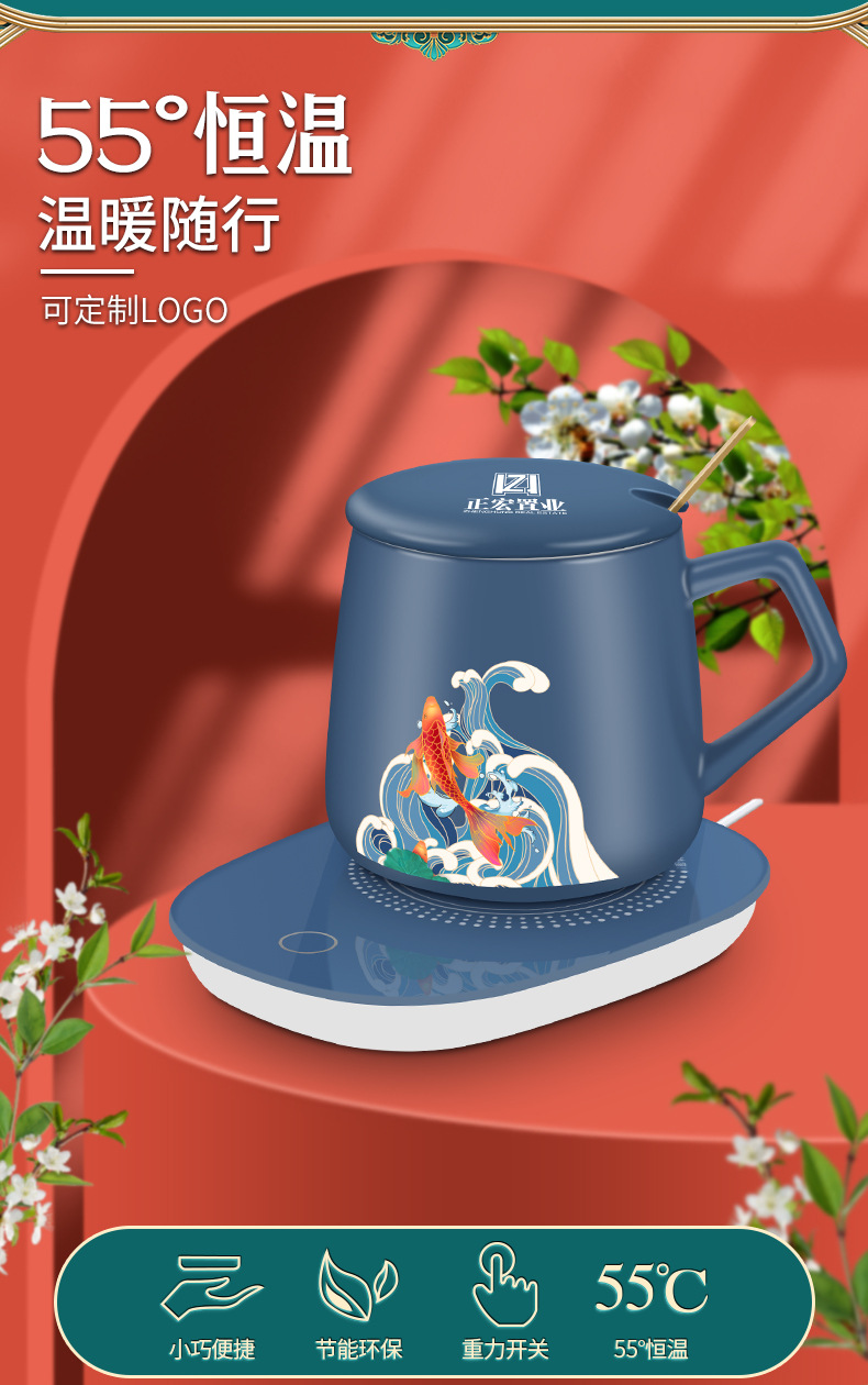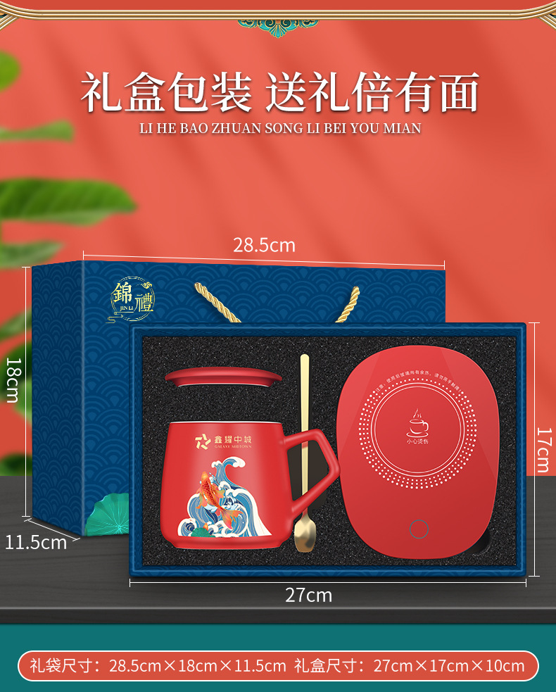 【礼品定制】55度恒温杯陶瓷杯国潮年会礼品加热杯垫暖暖杯伴手礼套装印制logo