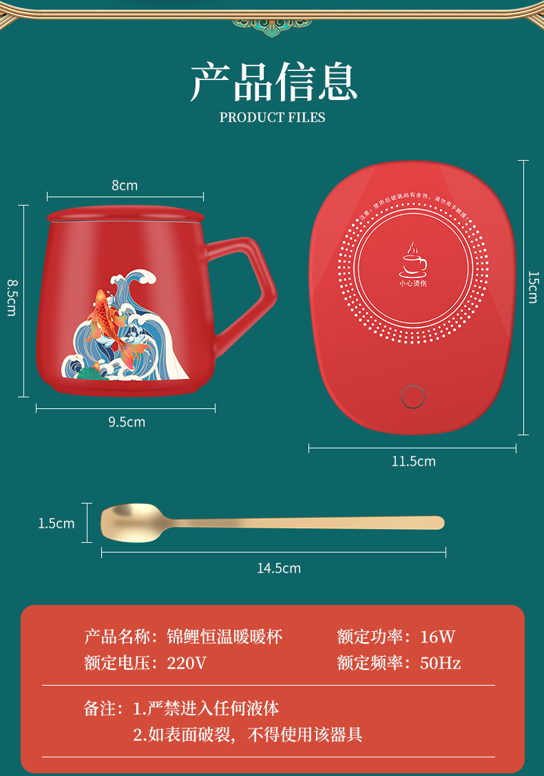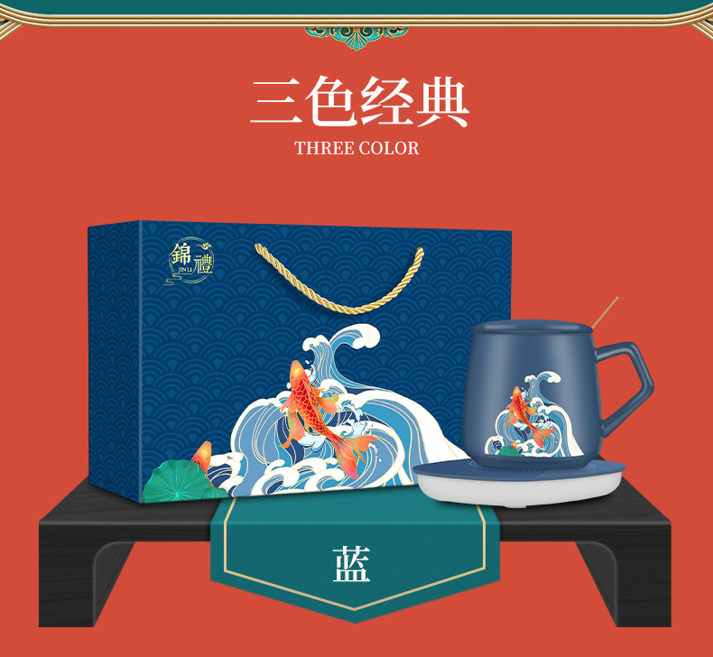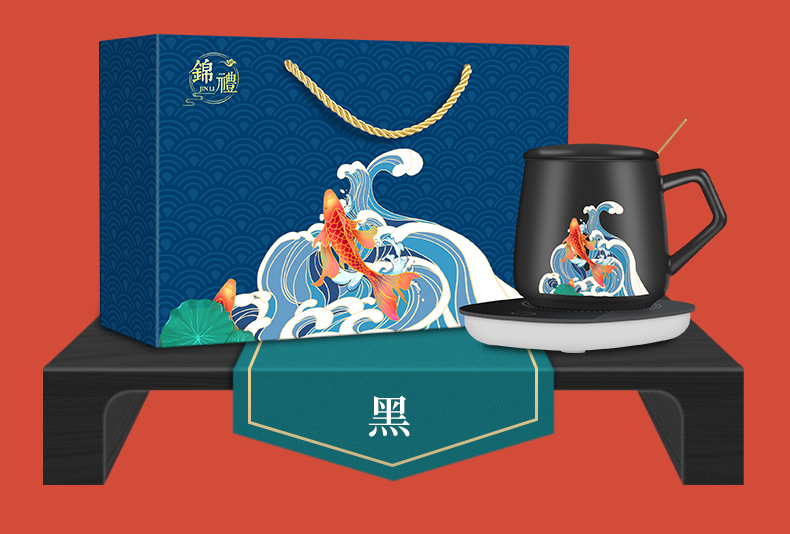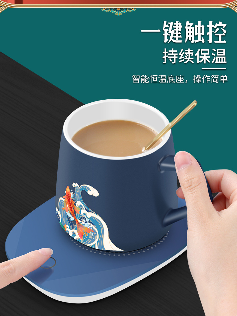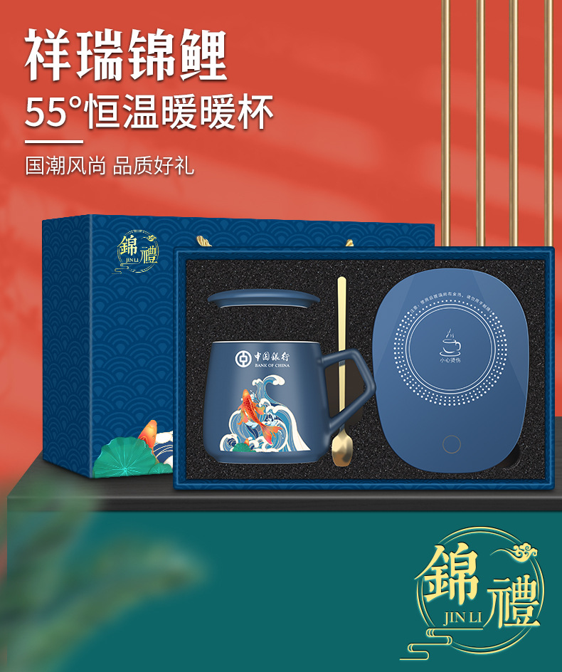 【礼品定制】55度恒温杯陶瓷杯国潮年会礼品加热杯垫暖暖杯伴手礼套装印制logo