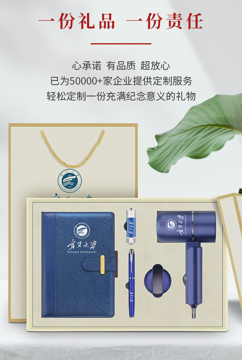 吹风机+笔记本+签字笔+两用U盘8G 蓝色