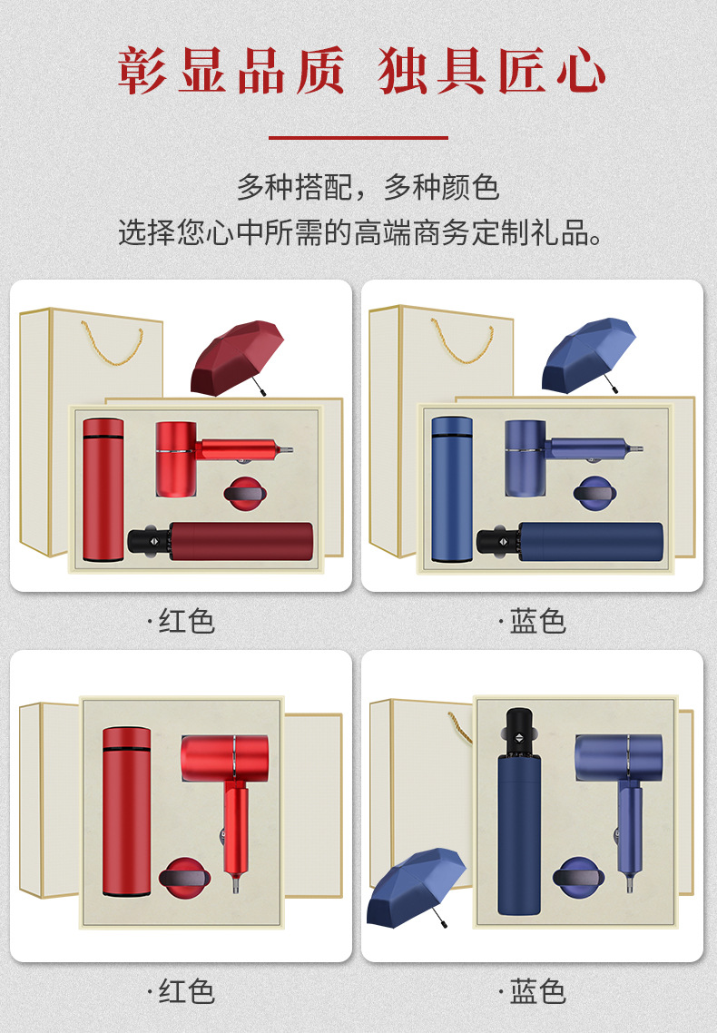 雨伞+吹风机 蓝色,雨伞+吹风机 红色,保温杯+吹风机 蓝色,保温杯+吹风机 红色,雨伞+吹风机+保温杯 蓝色,雨伞+吹风机+保温杯 红色,吹风机+笔记本+签字笔 蓝色,吹风机+笔记本+签字笔 红色,吹风机+笔记本+签字笔+两用U盘8G 蓝色,吹风机+笔记本+签字笔+两用U盘8G 红色,锦鲤雨伞+吹风机 蓝色,锦鲤雨伞+吹风机 红色,锦鲤保温杯+吹风机 蓝色,锦鲤保温杯+吹风机 红色,锦鲤雨伞+吹风机+锦鲤保温杯 蓝色,锦鲤雨伞+吹风机+锦鲤保温杯 红色