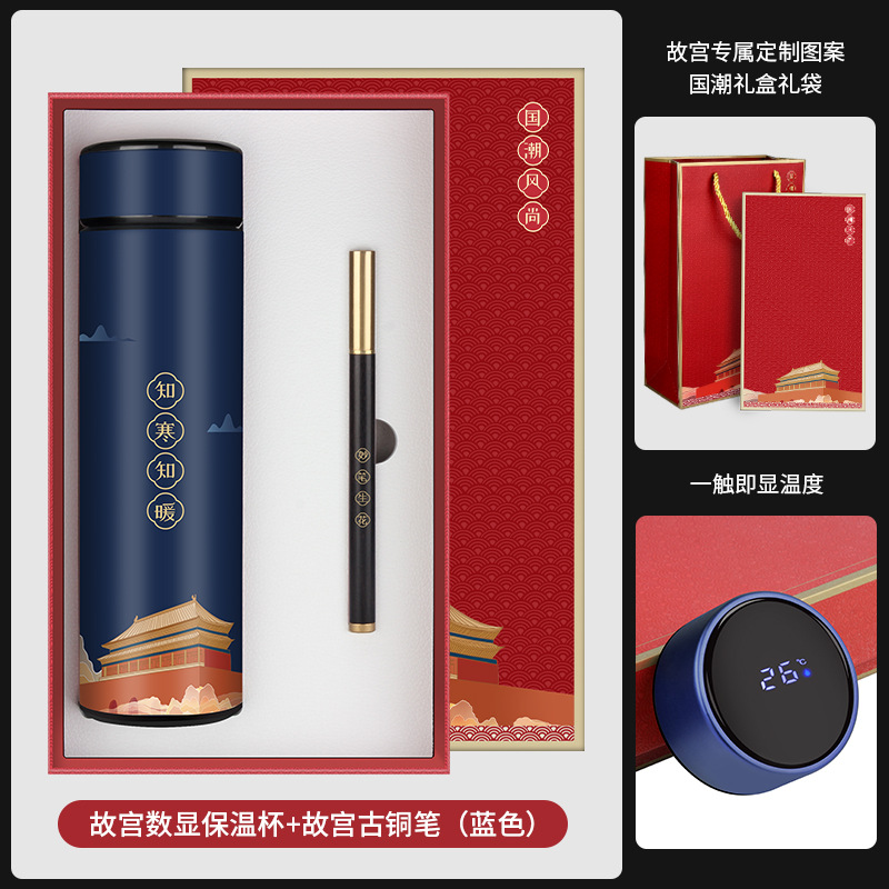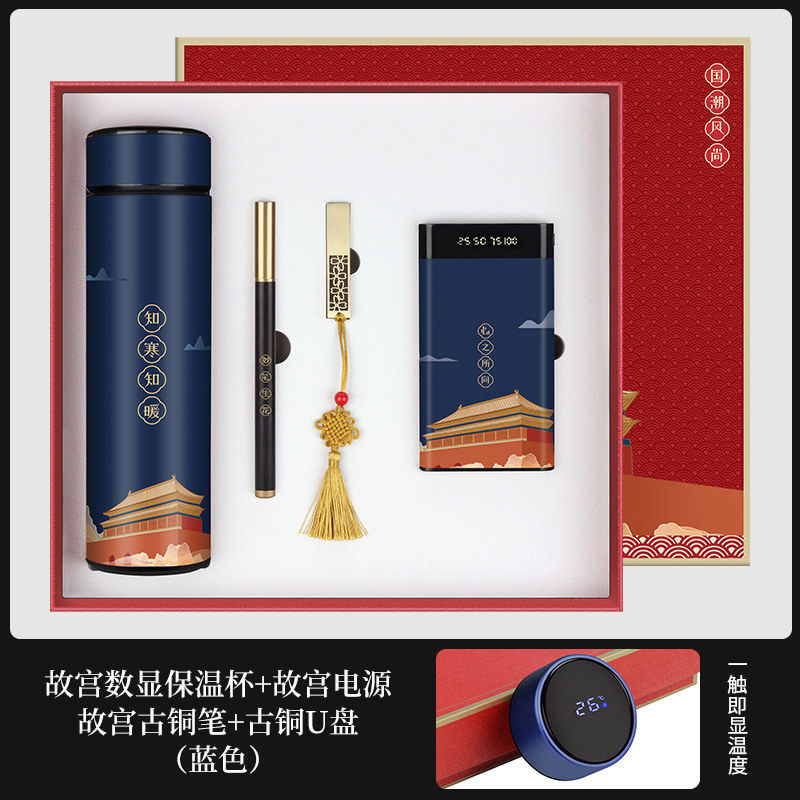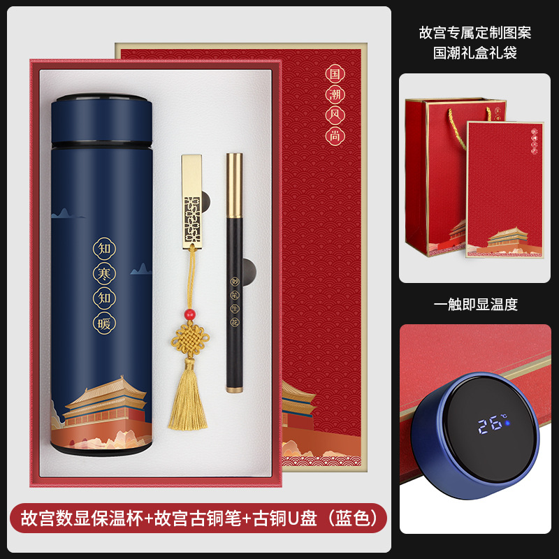 数显杯+笔+充电宝+古铜U盘8G 蓝色