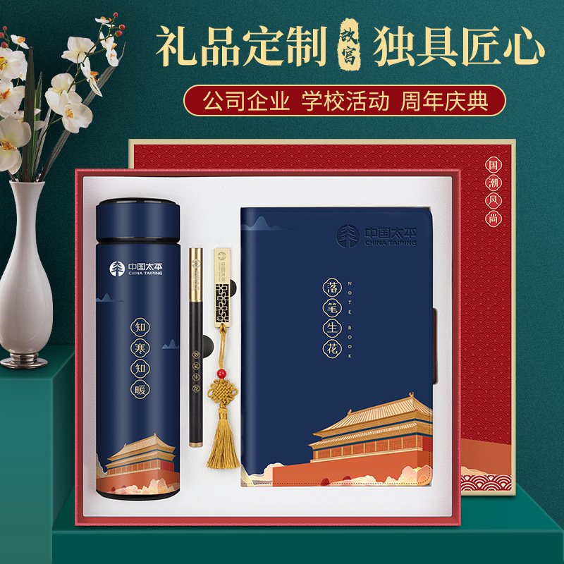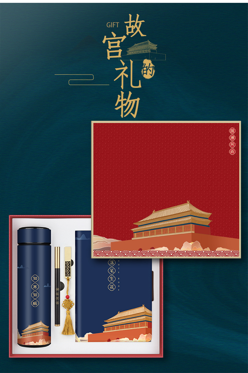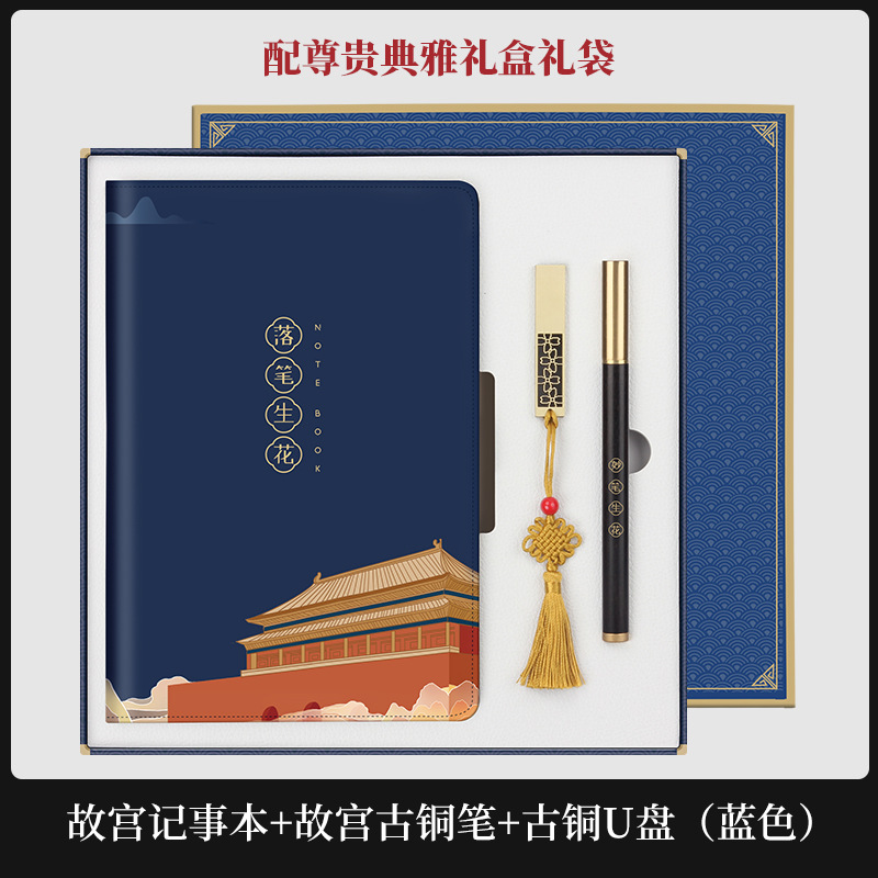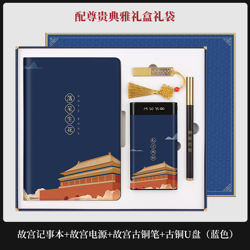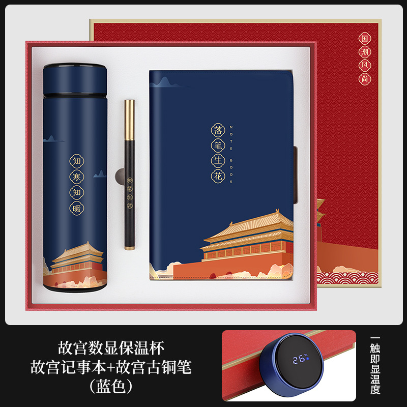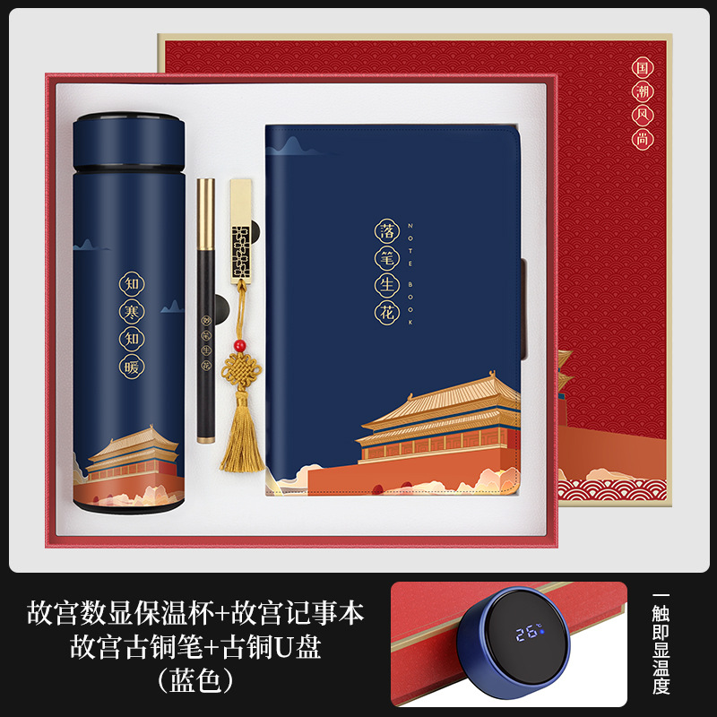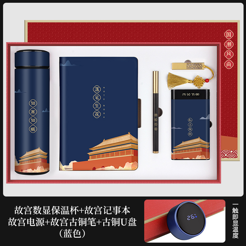 数显杯+笔+充电宝+古铜U盘8G+本 蓝色