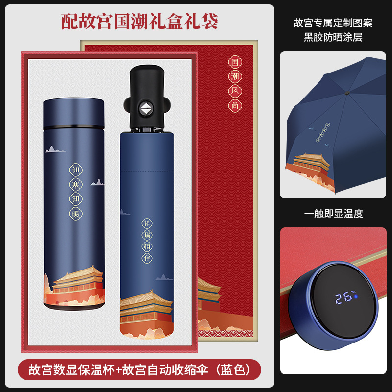 数显杯+签字笔+笔记本+雨伞 蓝色