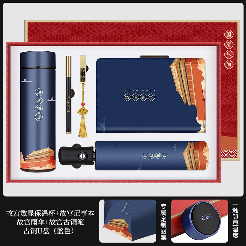 数显杯+签字笔+笔记本+雨伞+U盘 蓝色