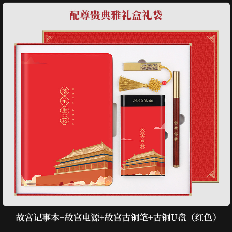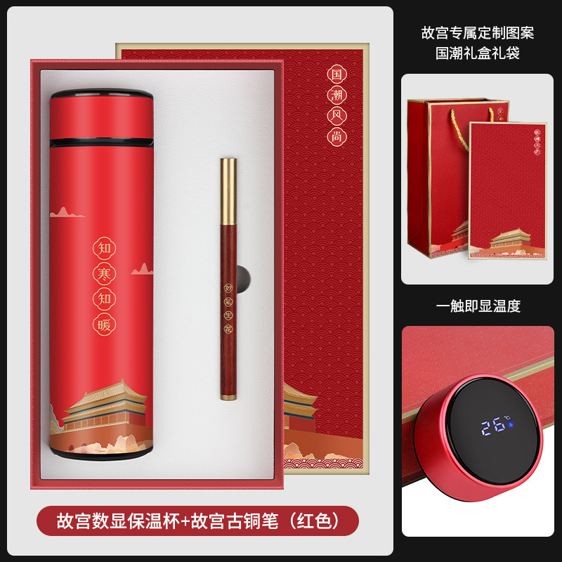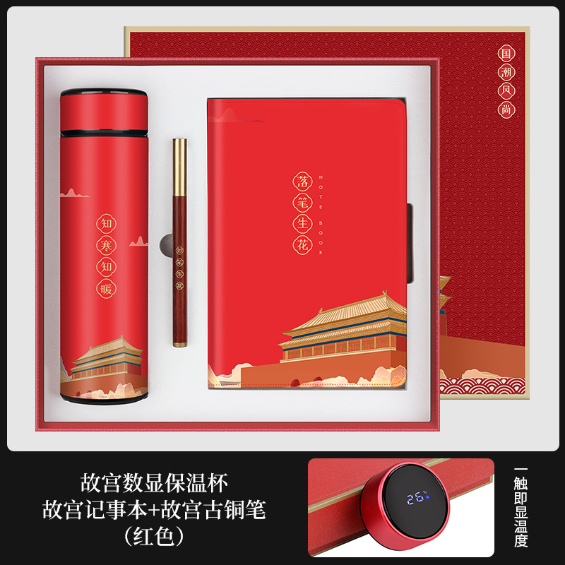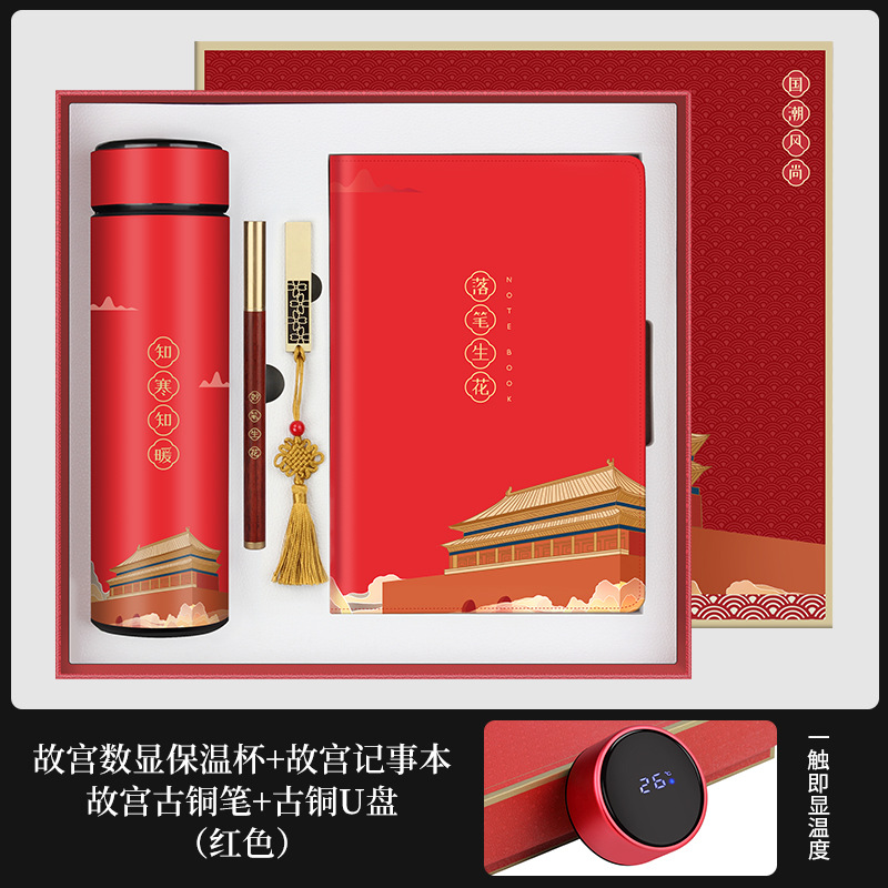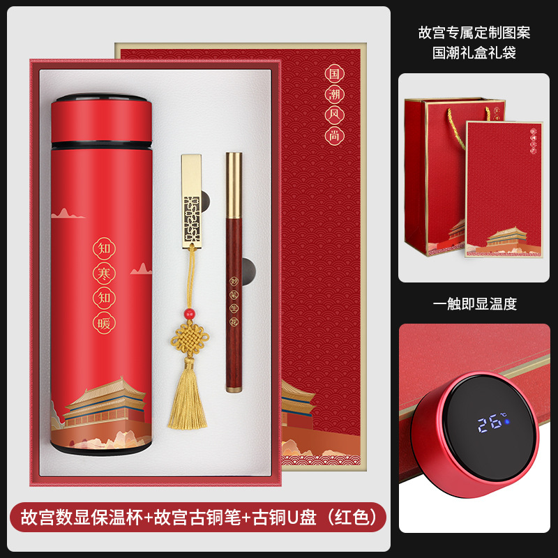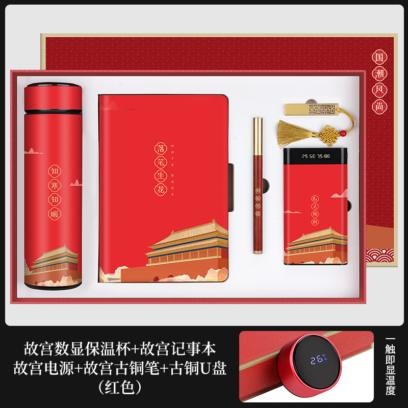 数显杯+笔+充电宝+古铜U盘8G+本 红色
