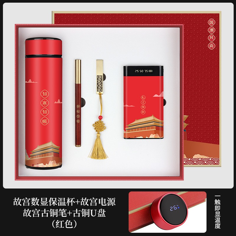 数显杯+笔+充电宝+古铜U盘8G 红色