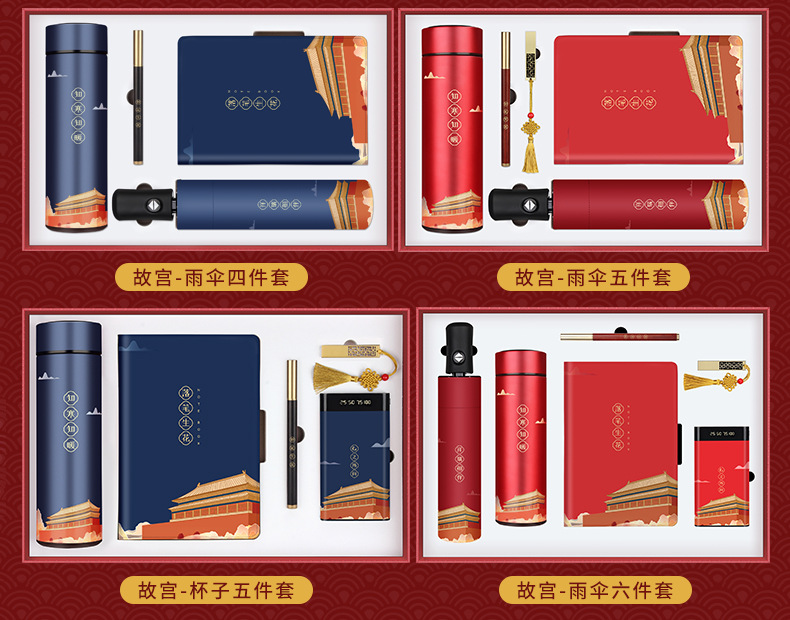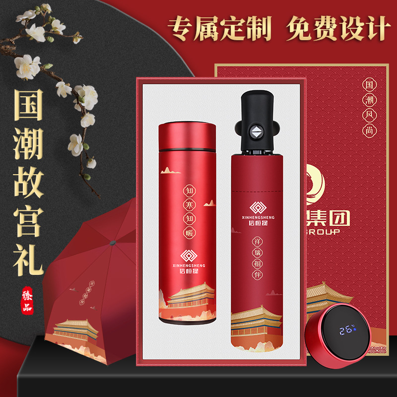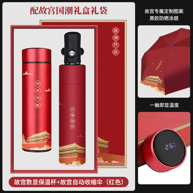 数显杯+签字笔+笔记本+雨伞+U盘+充电宝 红色