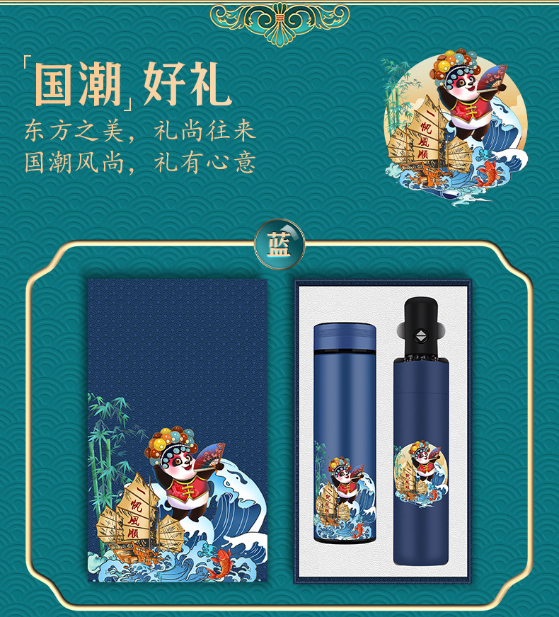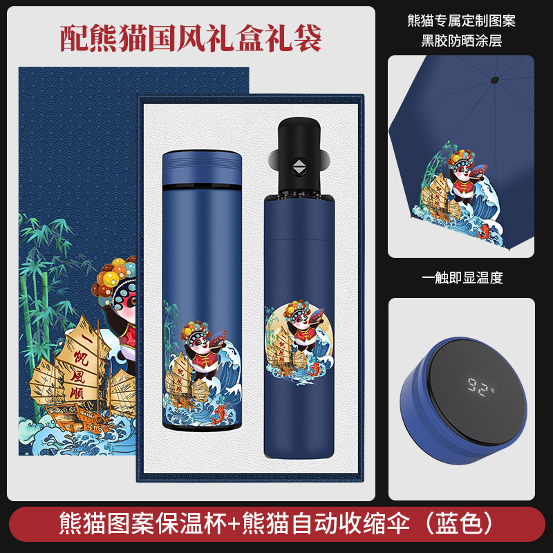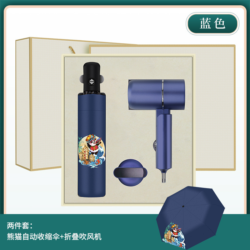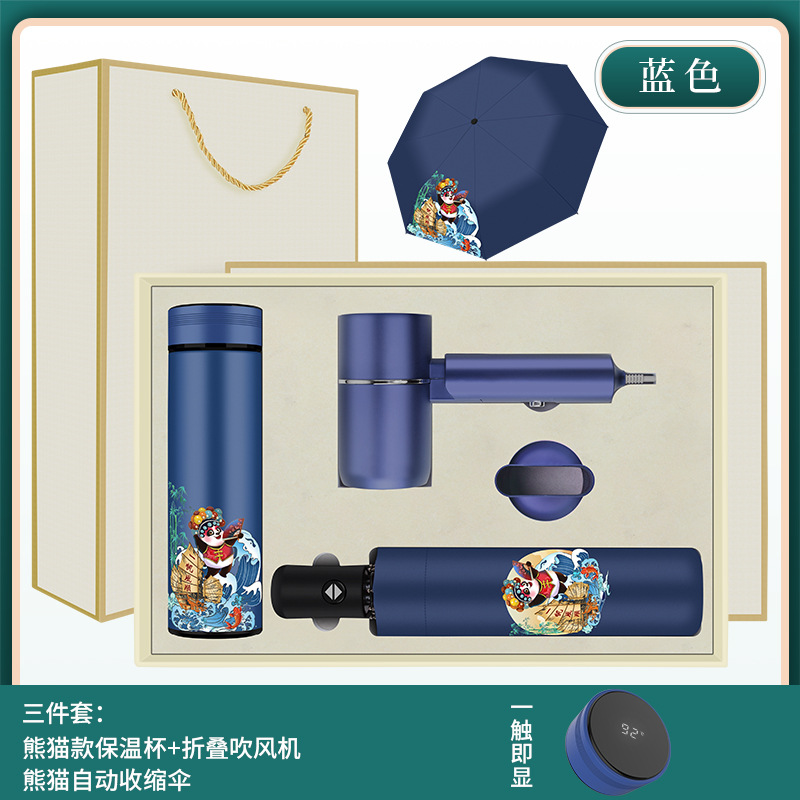 一帆风顺数显杯+一帆风顺黑胶雨伞+吹风机 蓝色
