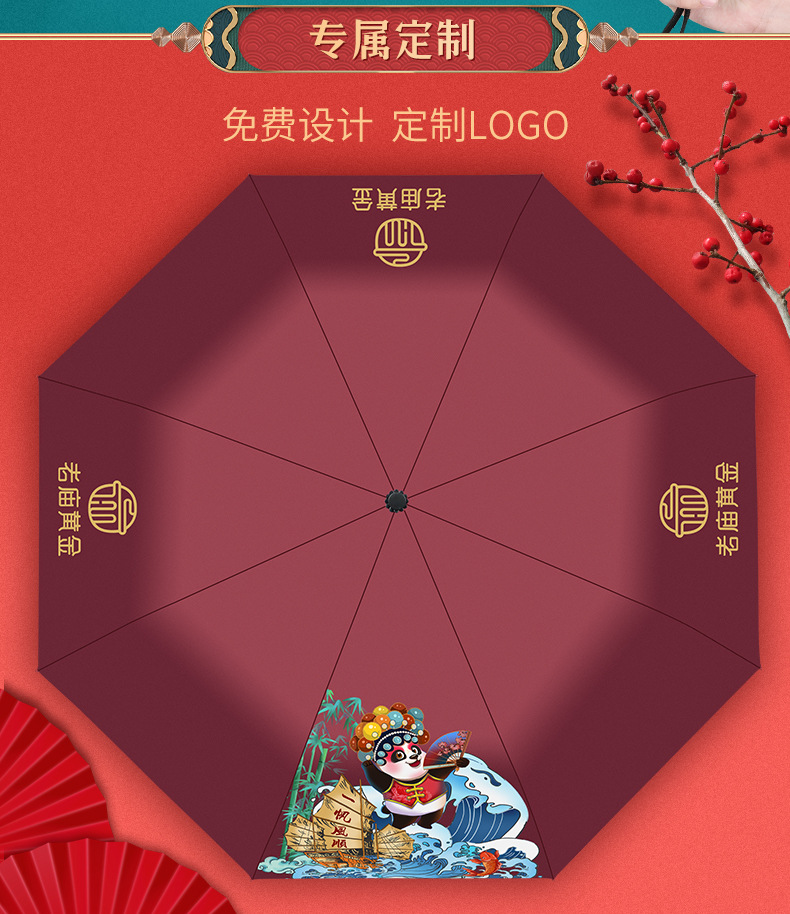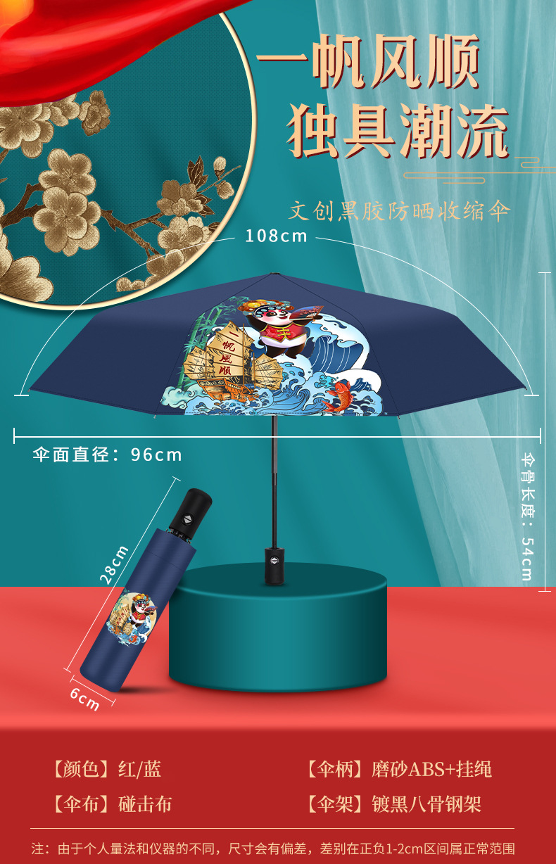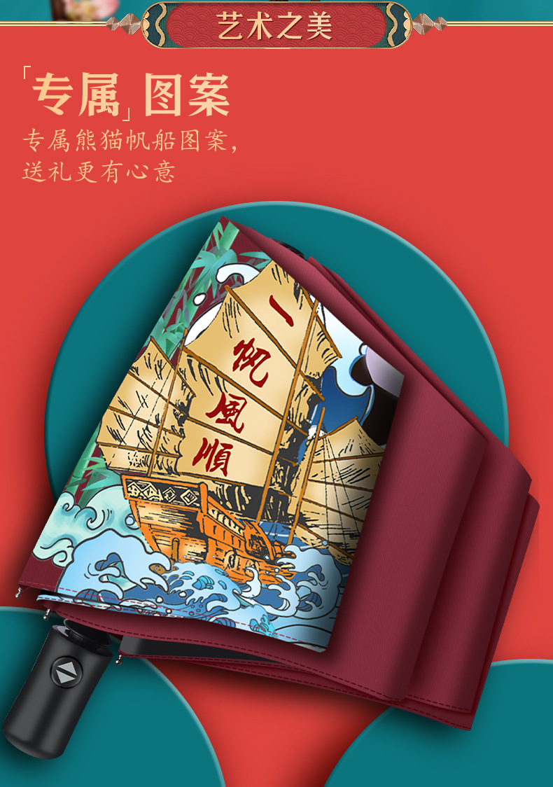 一帆风顺黑胶雨伞 红色