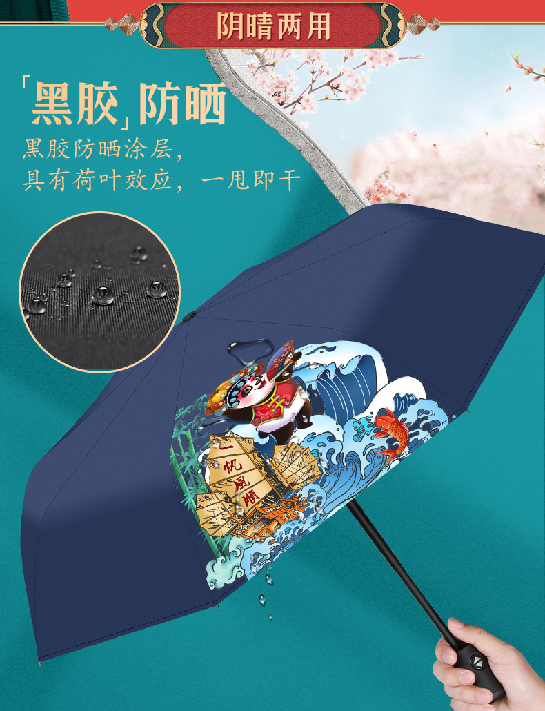 一帆风顺黑胶雨伞 蓝色