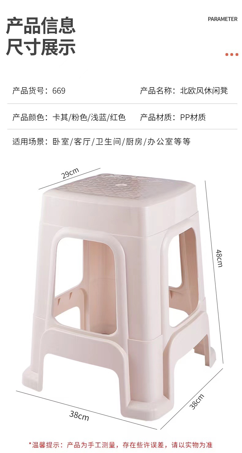 北欧塑料高凳大排档加厚加宽塑料方凳多色可选成人椅