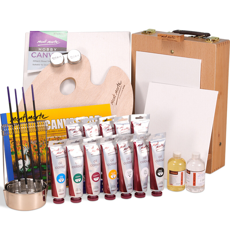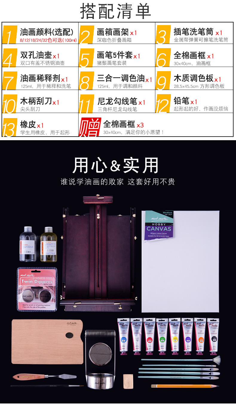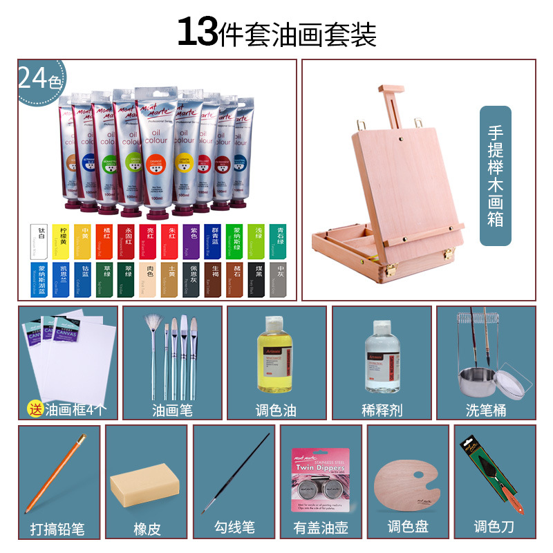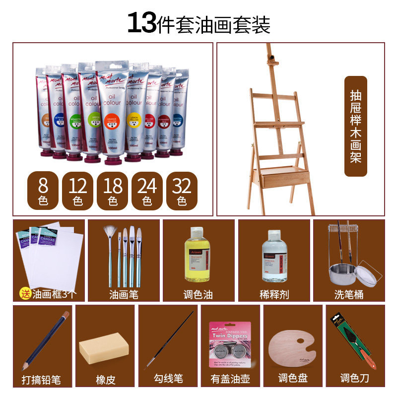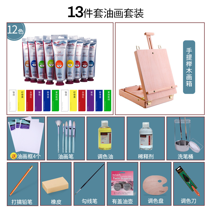 蒙玛特13件油画套装 美术生写生工具全套材料油画架画箱油画颜料