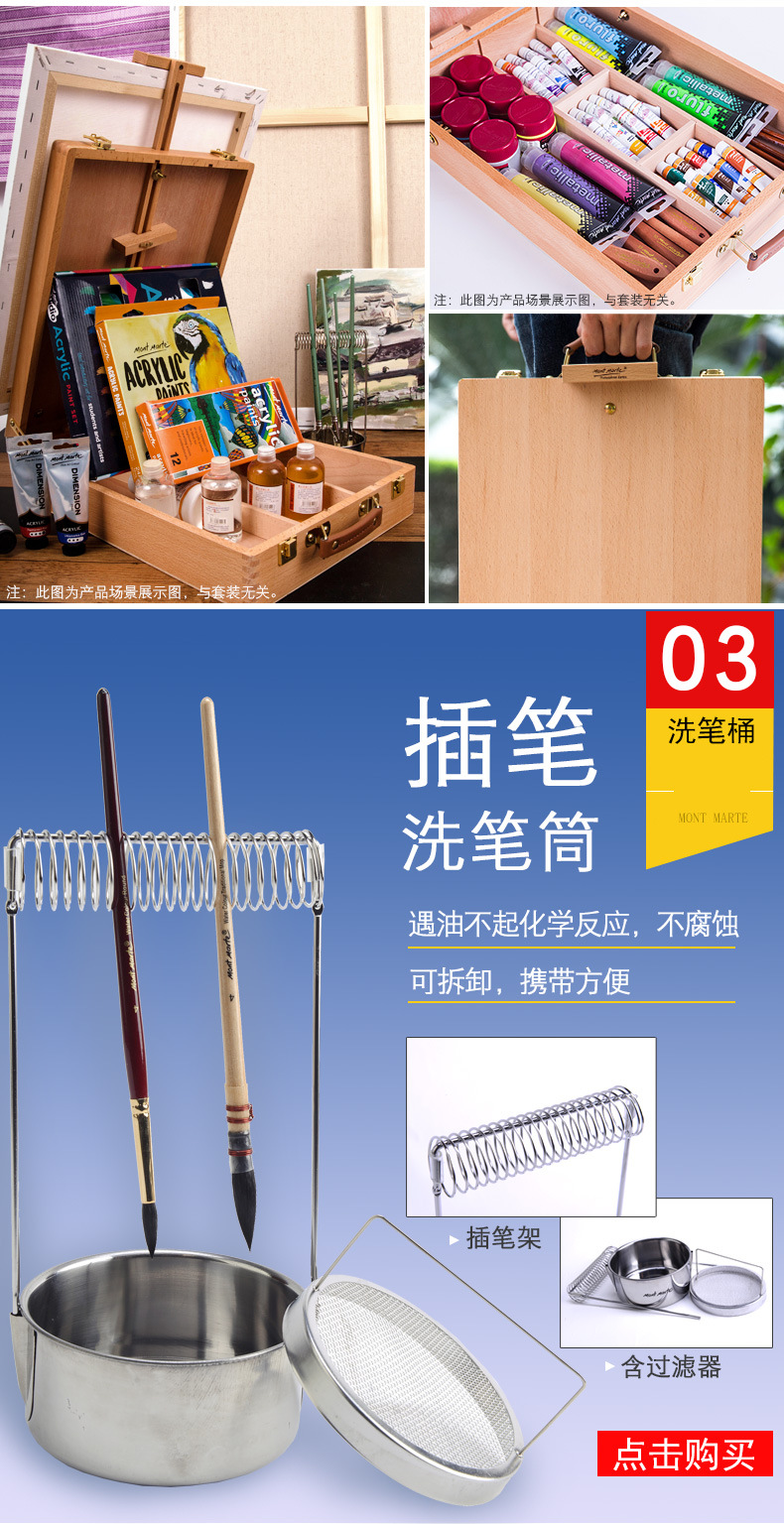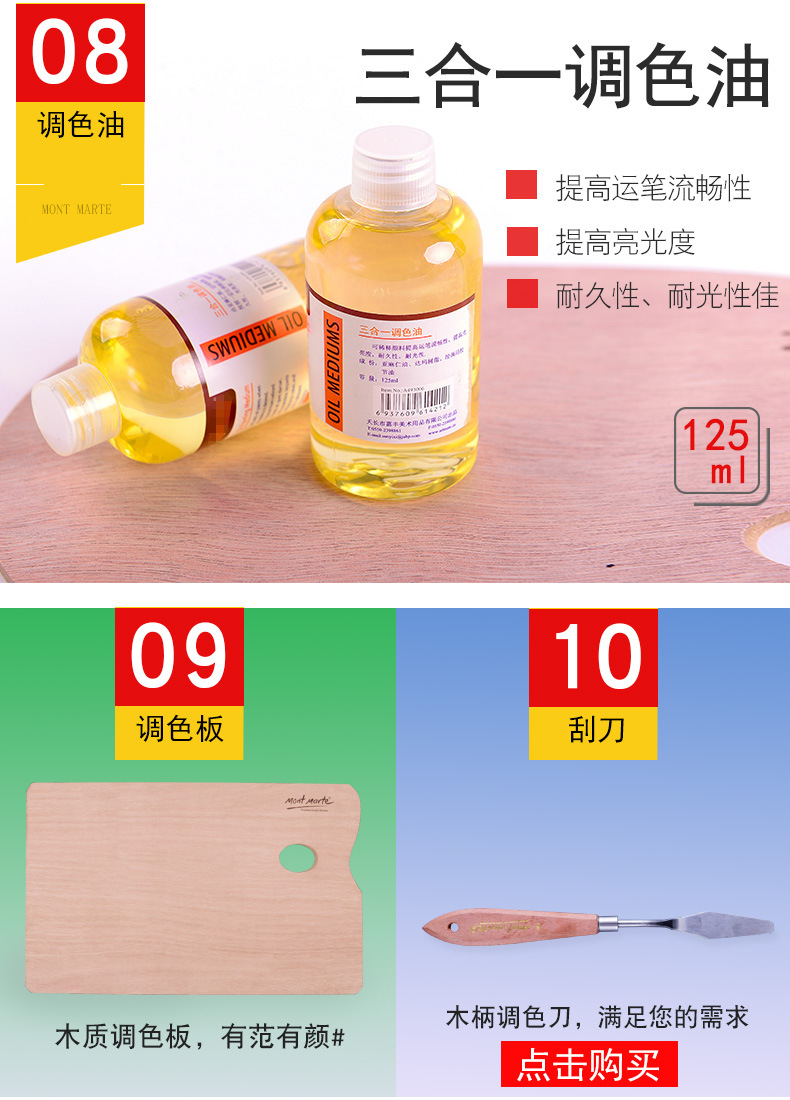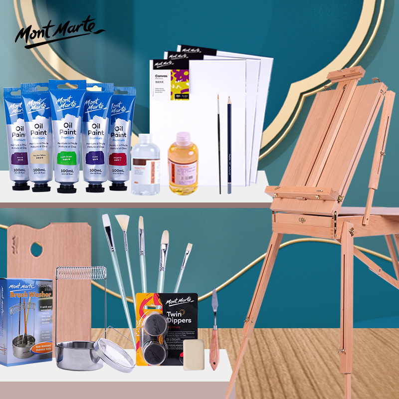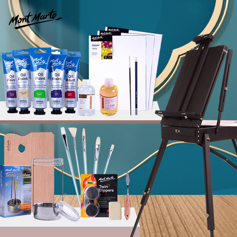蒙玛特13件油画套装 美术生写生工具全套材料油画架画箱油画颜料