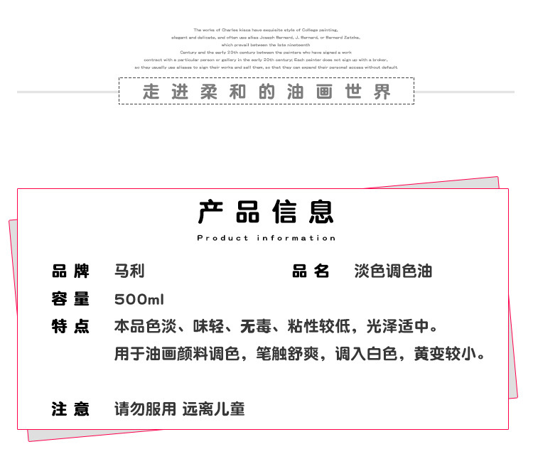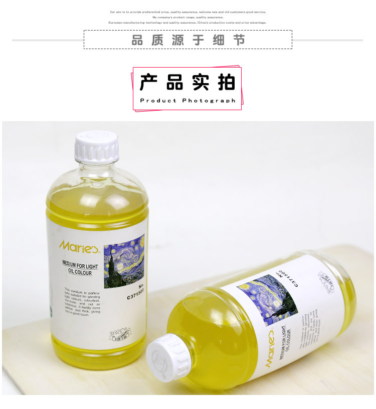马利371500淡色油画颜料调色油 500ML媒介剂马利油画颜料