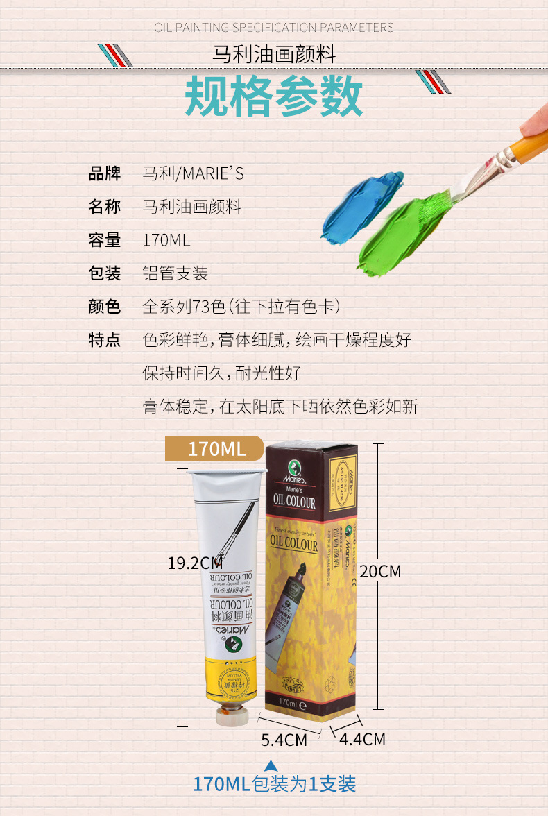 马利牌油画颜料170ml铝管单支大号绘画颜料 画材美术用品