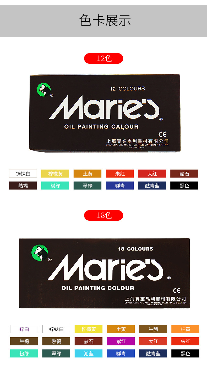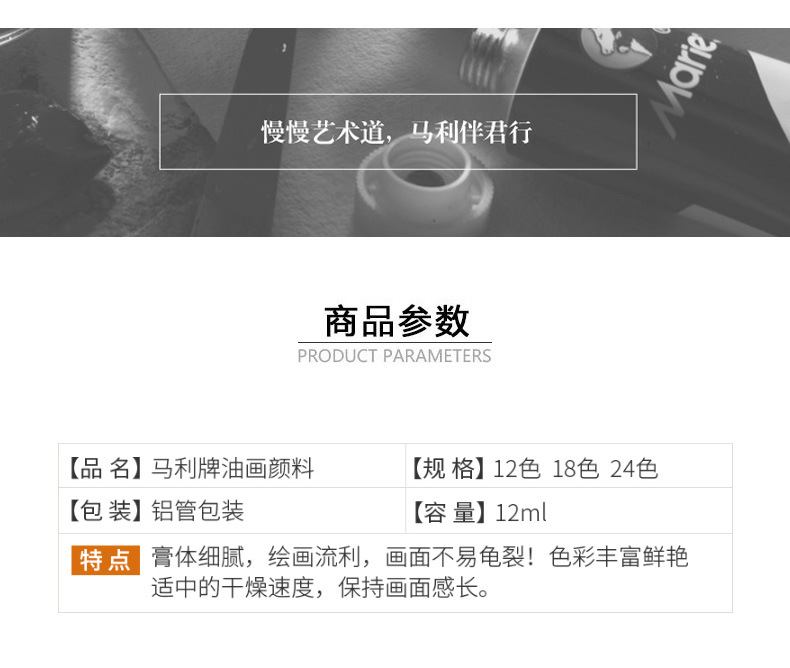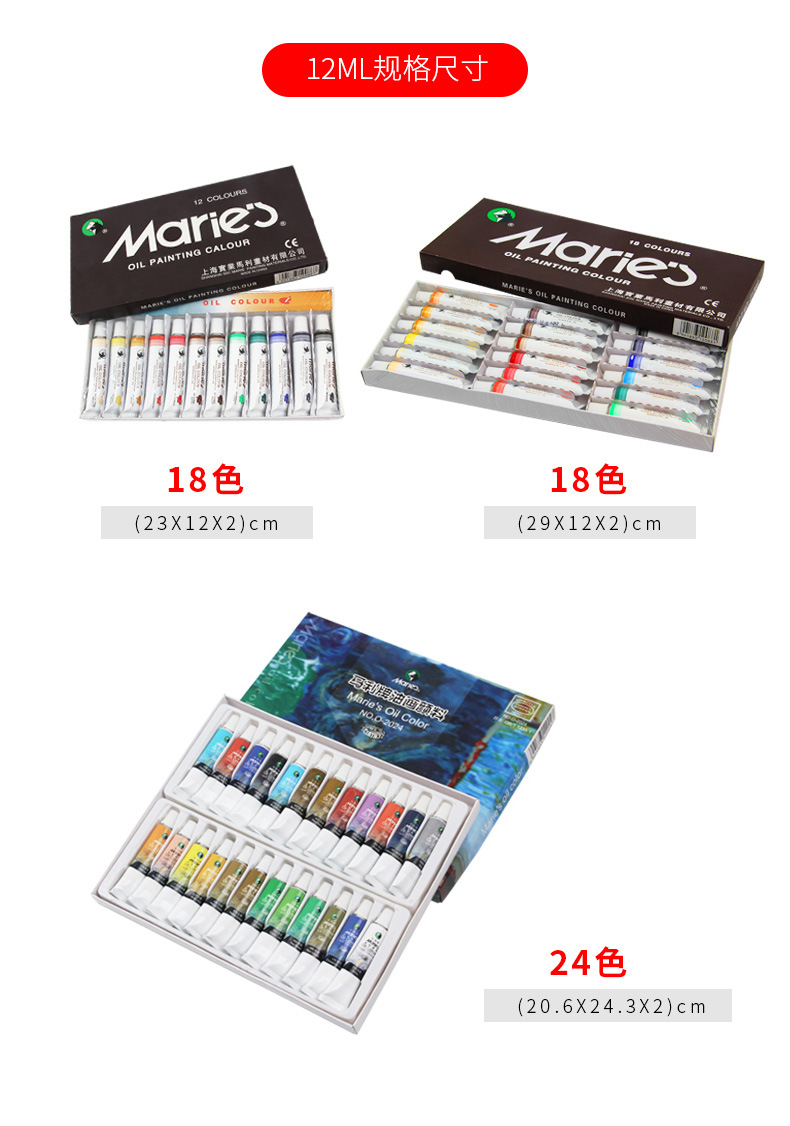 马利牌油画颜料12ml美术颜料12色18色24色写生油画工具套装