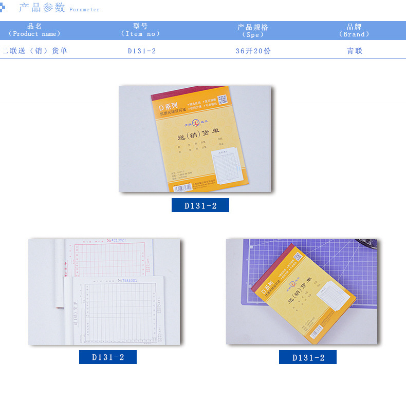 D131-2二联无碳复写销货单办公财务用品36开20组收据联单