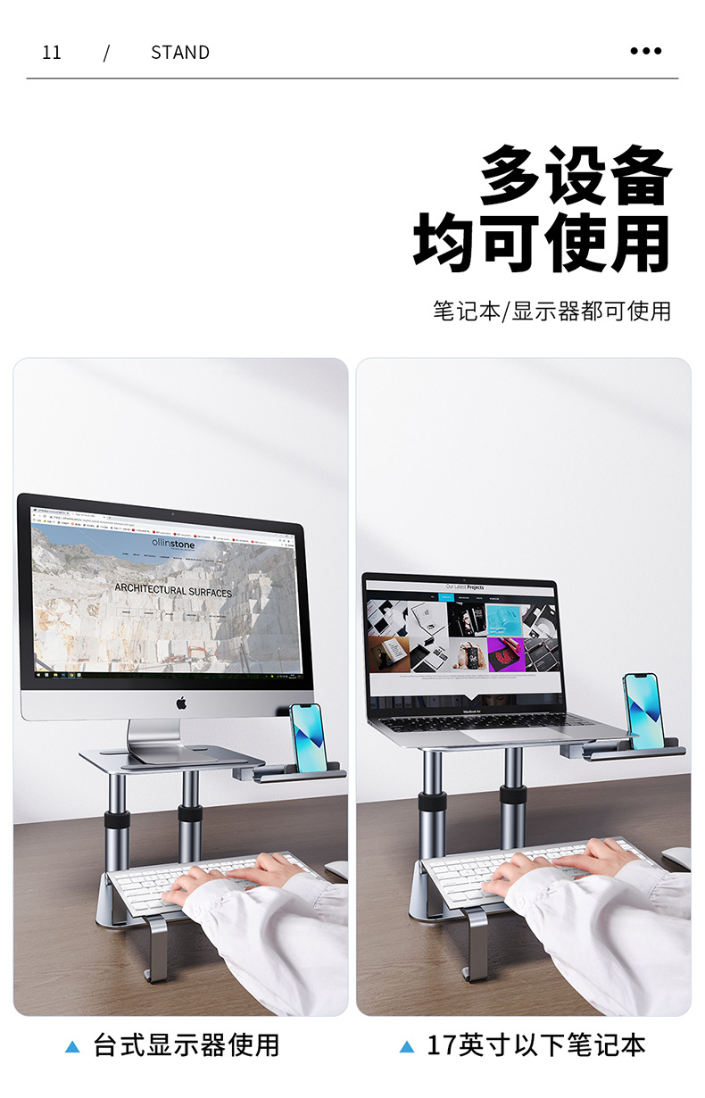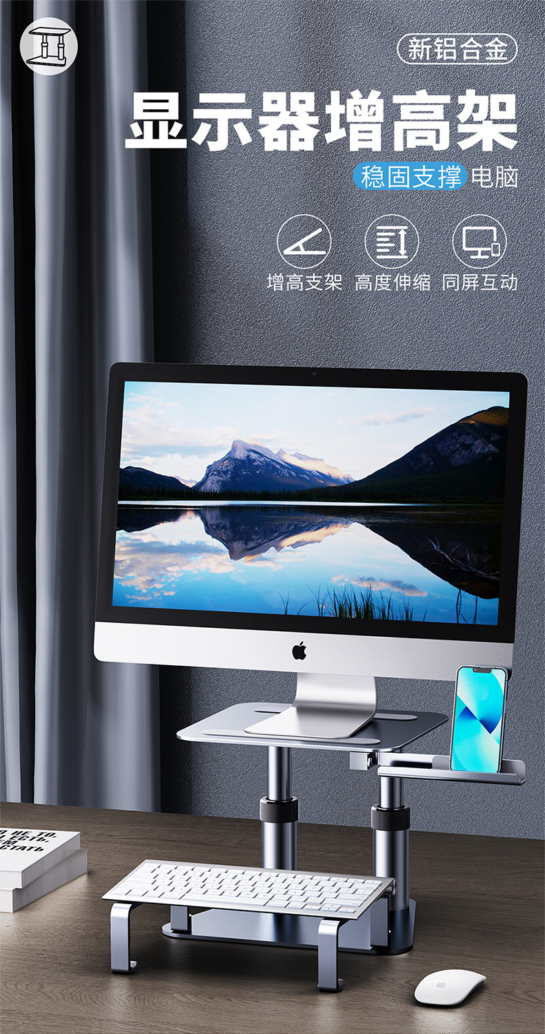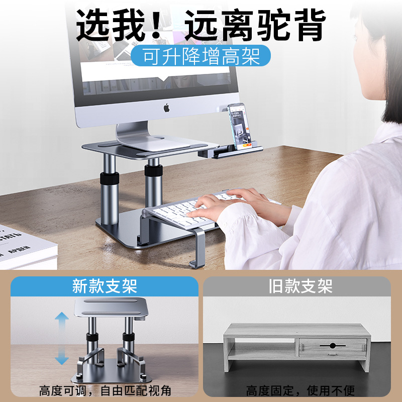 派凡合金显示器增高架可升降设备共用笔记本支架同屏手机支架