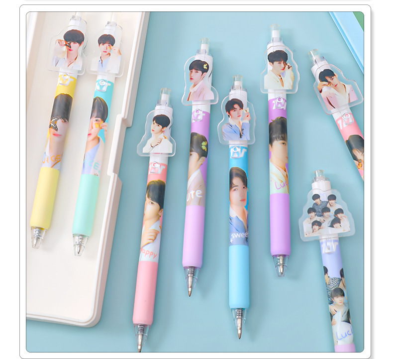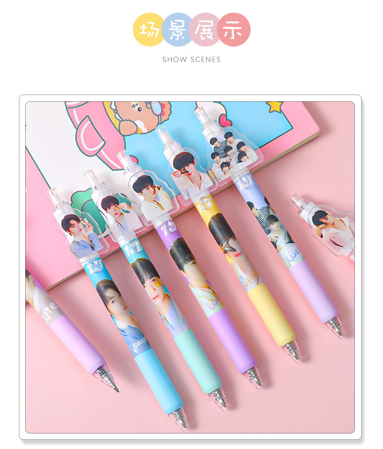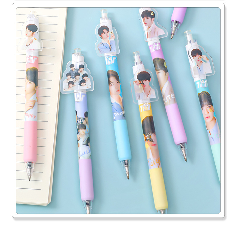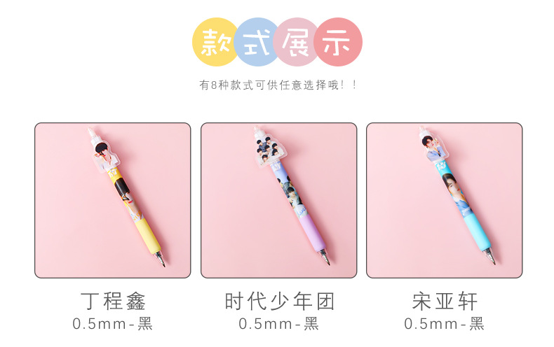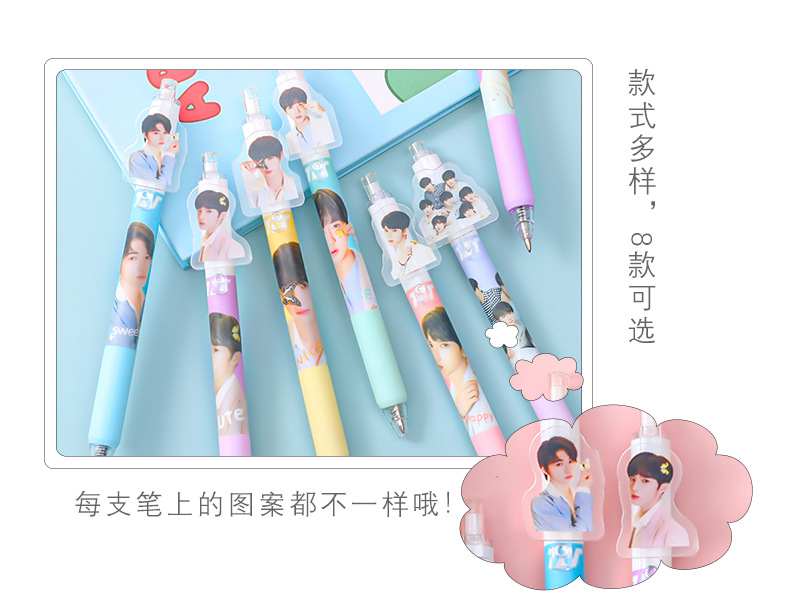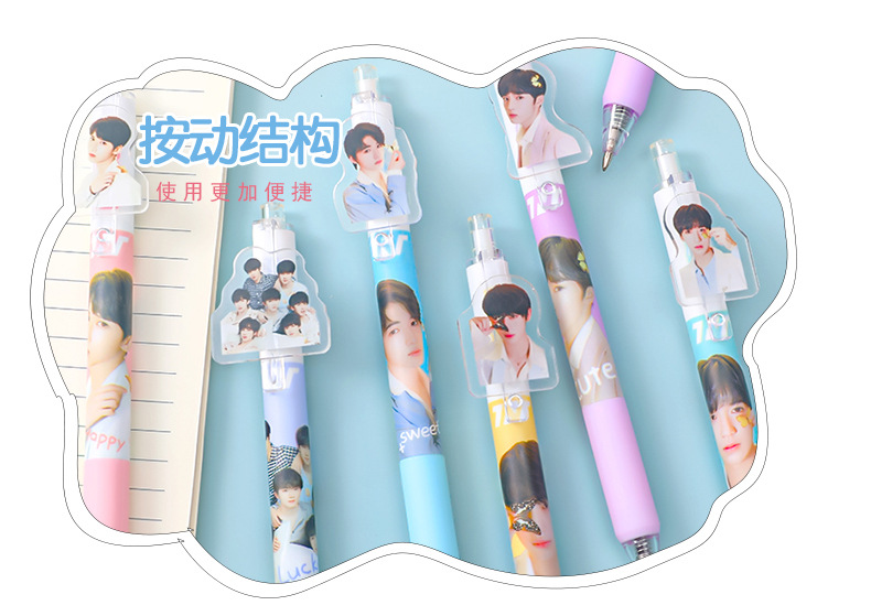 TNT时代少年团按动中性笔 亚克力明星贴片笔学生考试按压式签字笔