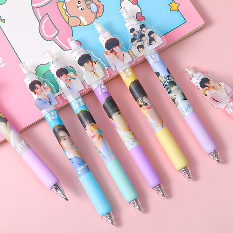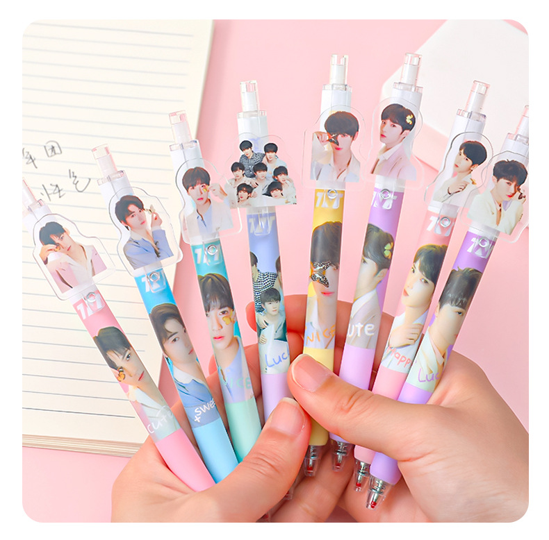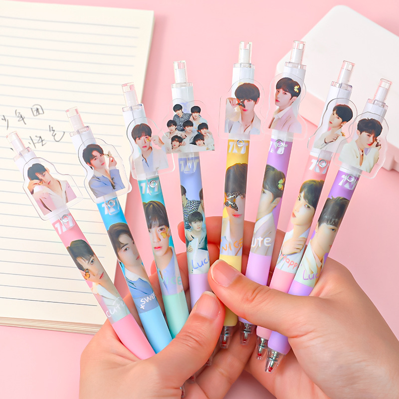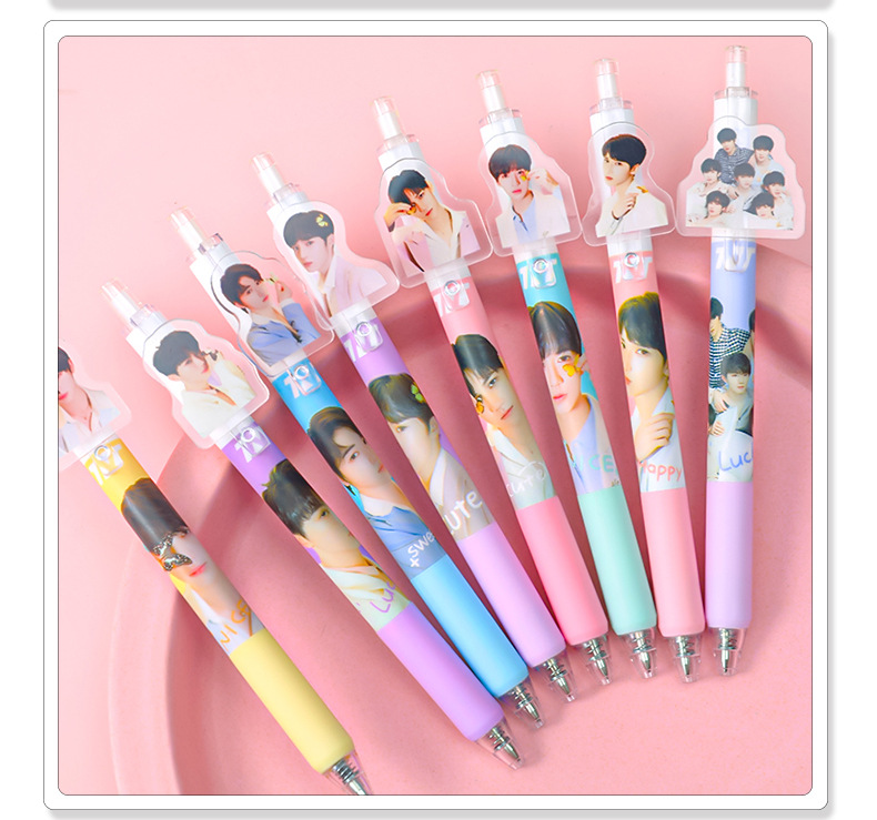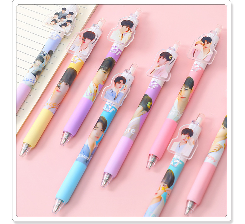 TNT时代少年团按动中性笔 亚克力明星贴片笔学生考试按压式签字笔