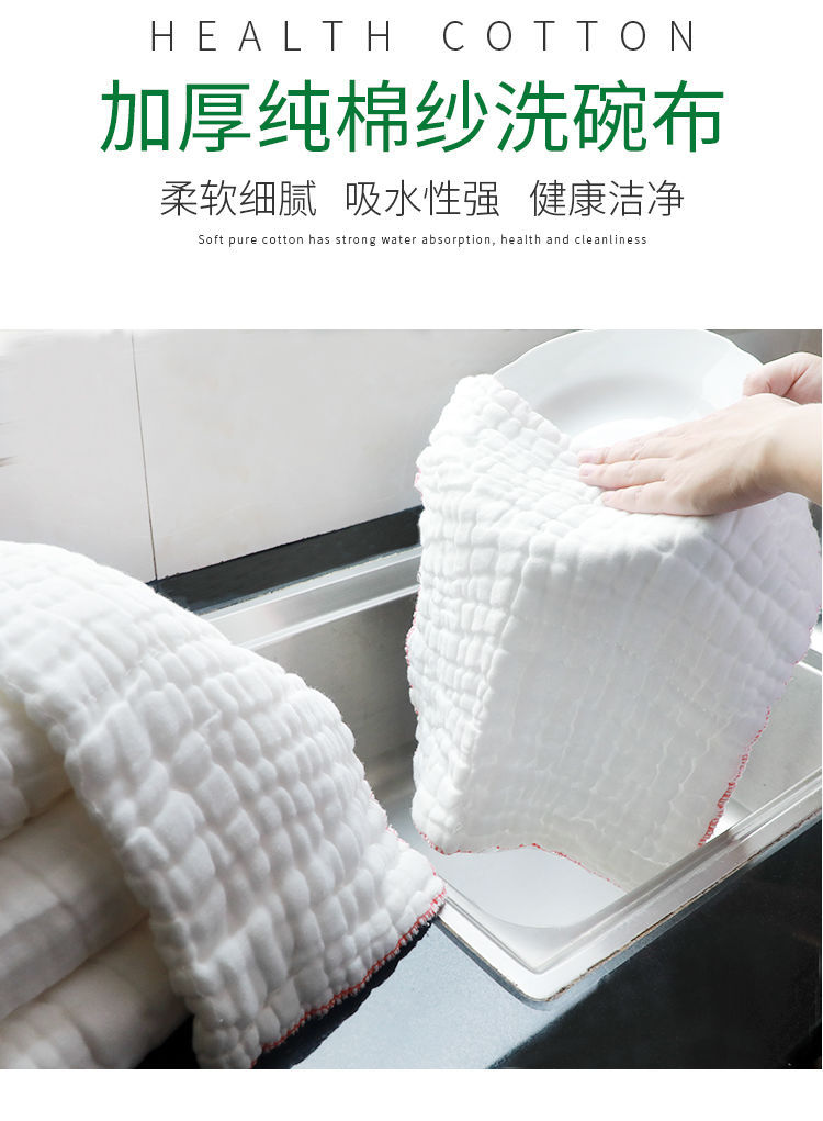 8层35*35加厚全棉抹布厨房清洁洗碗布竹纤维不沾油纯棉洗碗巾抹布