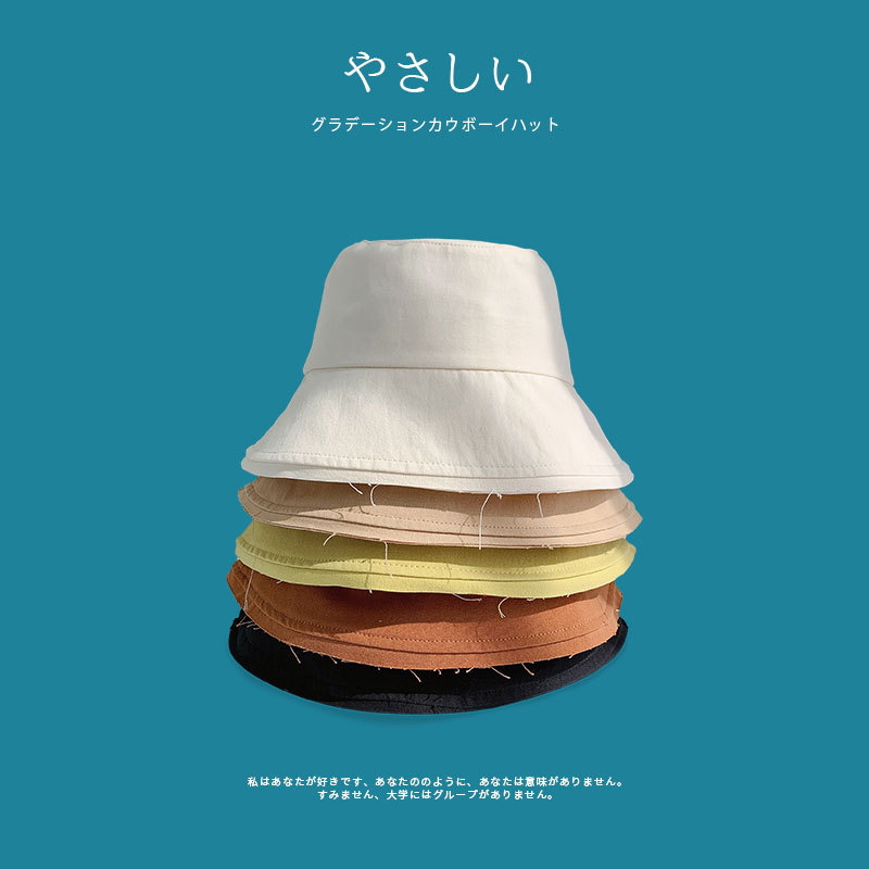 帽子日系渔夫帽女2022新款夏天纯色网红遮阳帽韩版大檐防晒太阳帽