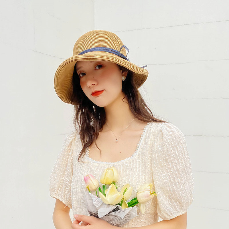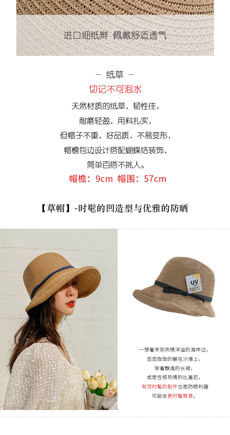 赫本风草帽女小檐夏天韩版百搭沙滩潮遮阳防晒帽时尚卷边渔夫帽子