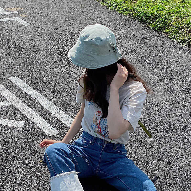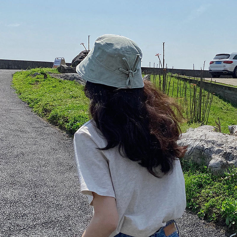 日系软妹甜美可爱系带蝴蝶结渔夫帽子女夏季韩版文艺遮阳防晒盆帽