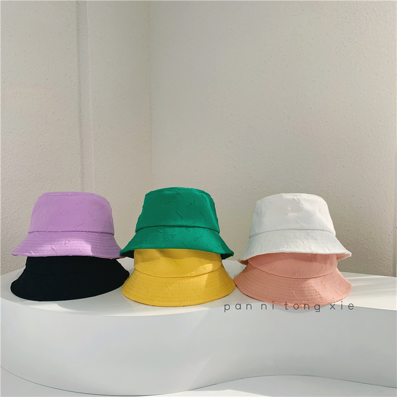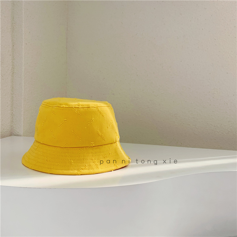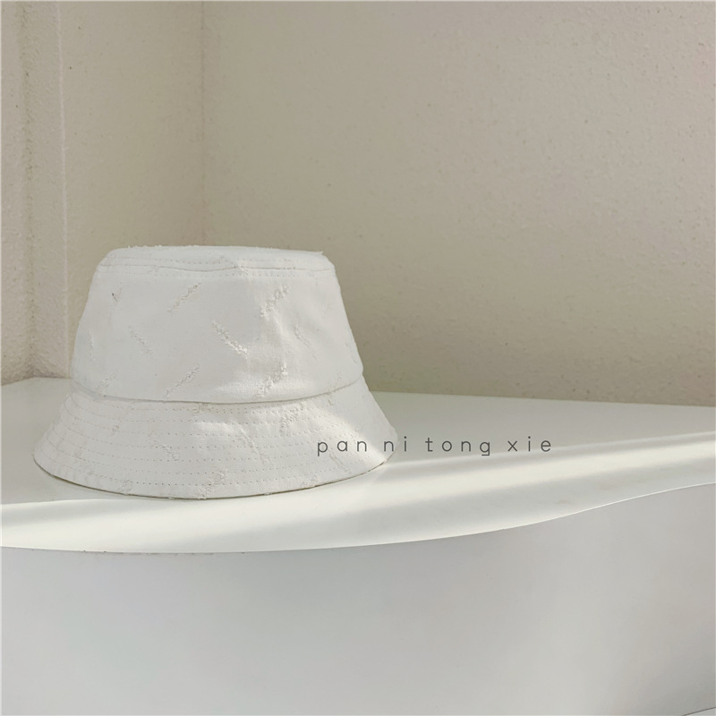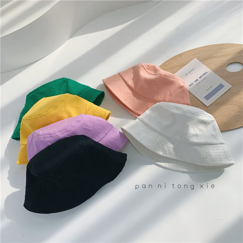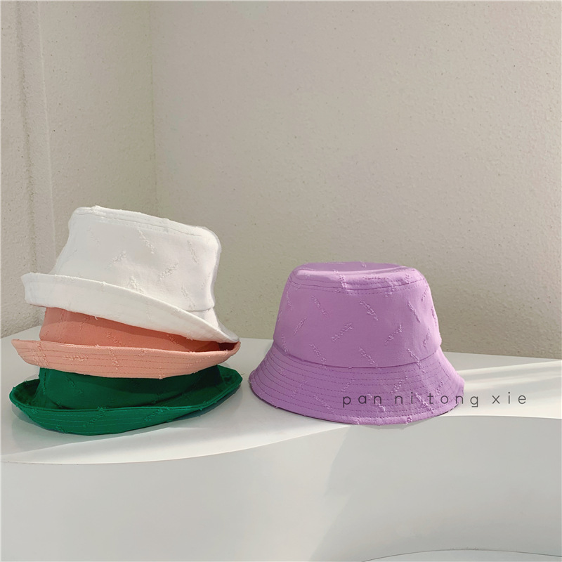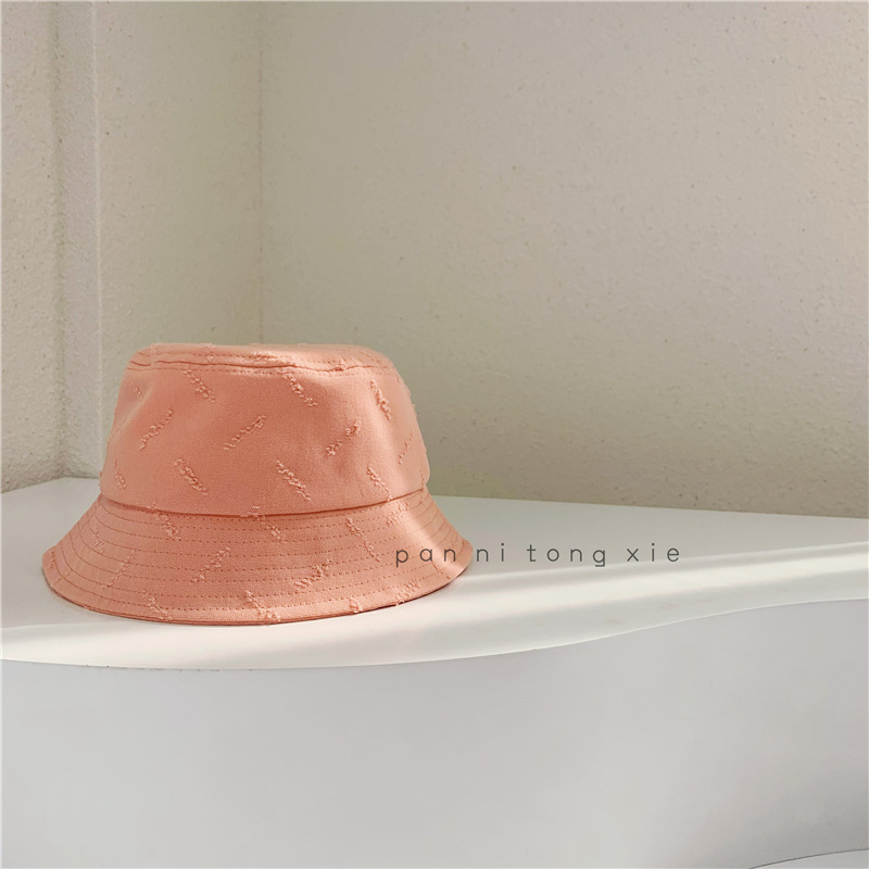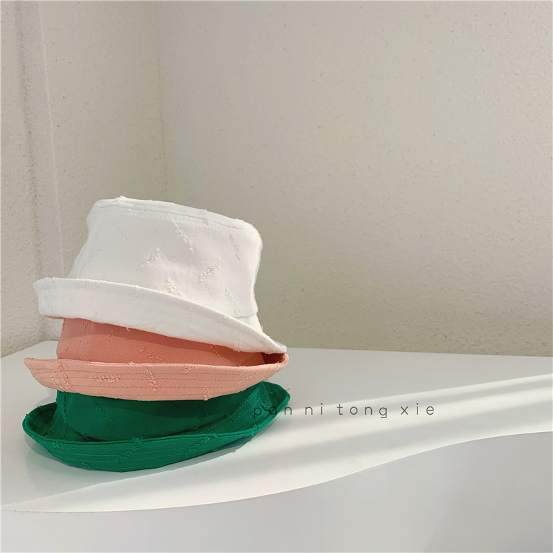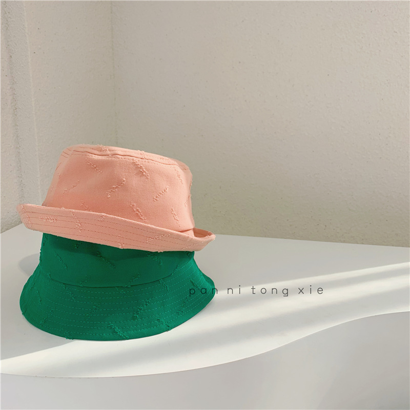 儿童渔夫帽复古破洞做旧2022春款纯色宝宝帽子男女童小孩盆帽