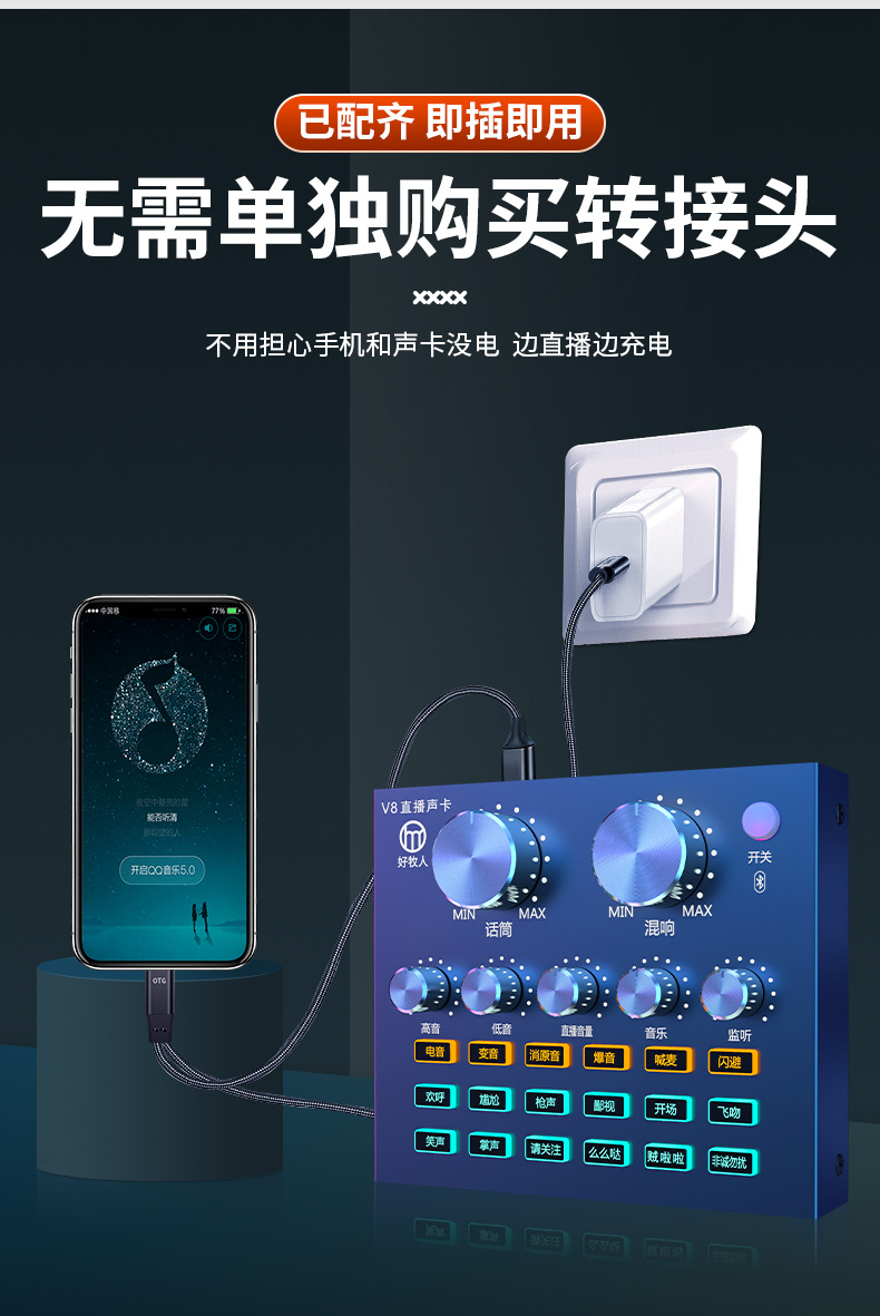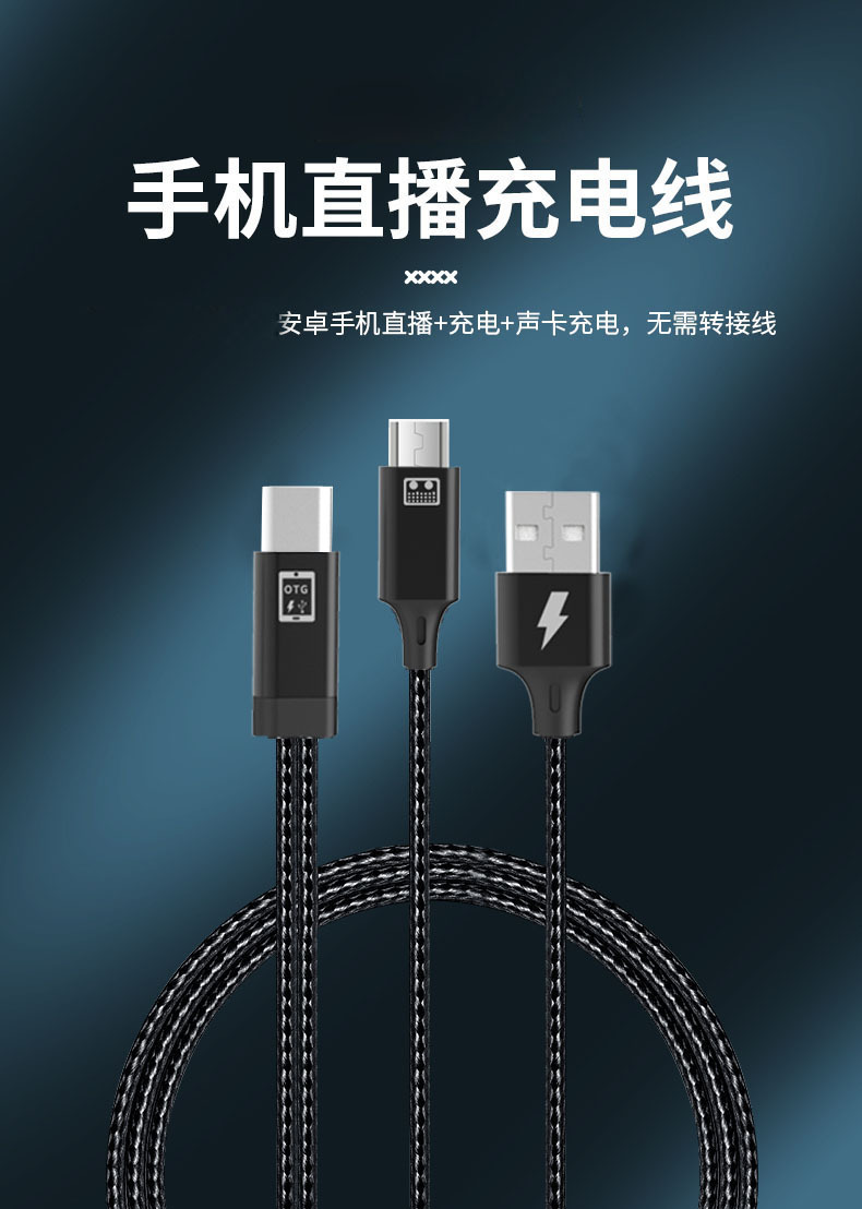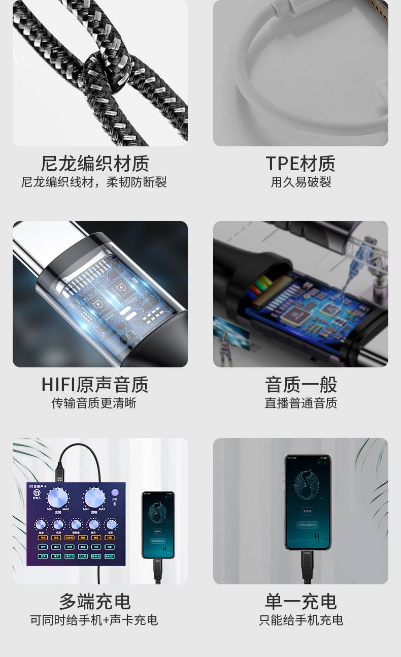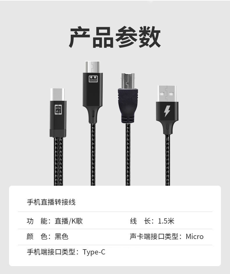 适用华为手机艾肯森然声卡USB转换器otg数据音频线直播充电数据线