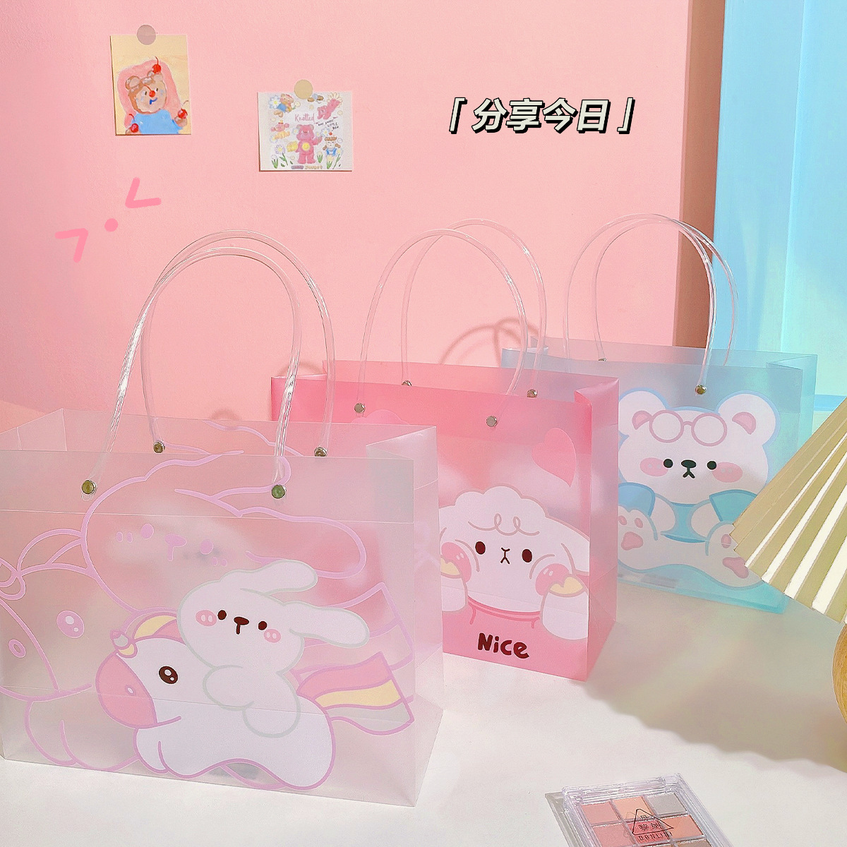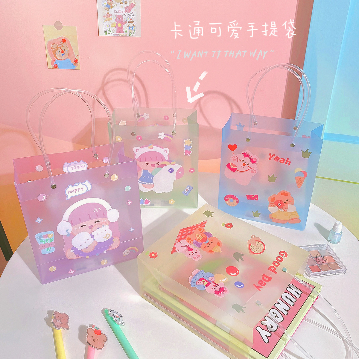 儿童节可爱ins风PVC手提袋卡通礼物收纳袋少女节日礼品收纳包装袋