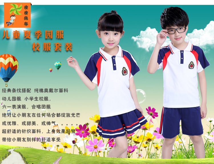 幼儿园园服夏季短袖套装学生校服学院风儿童运动风班服摄影表演服