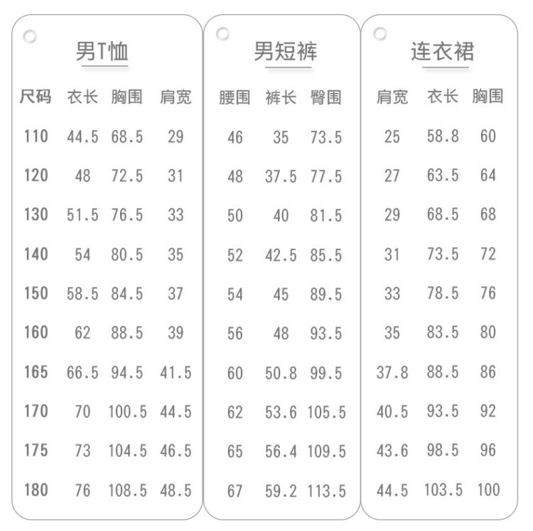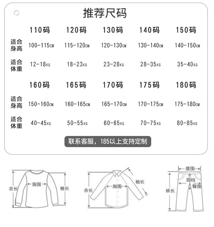 100码适合身高90cm,110码适合身高100cm,120码适合身高110cm,130码适合身高120cm,140码适合身高130cm,150码适合身高140cm,160码适合身高150cm,170码适合身高160cm,180码适合身高165-170cm,190码适合身高170-175cm
