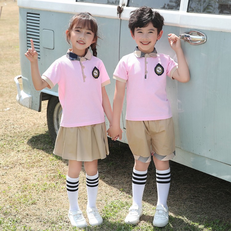 幼儿园园服小学生校服儿童班服英伦风夏季圆领短袖套装毕业摄影服