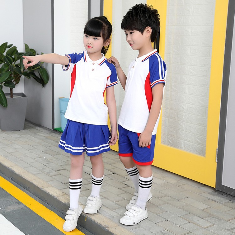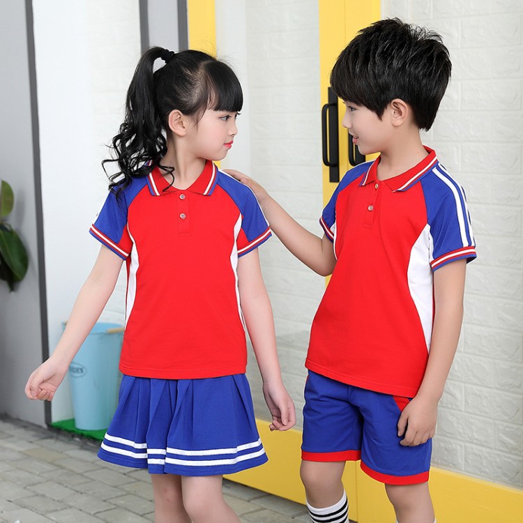 幼儿园园服夏季短袖套装学生校服学院风儿童运动风班服摄影表演服