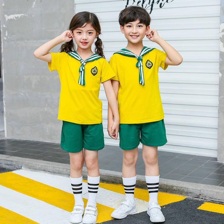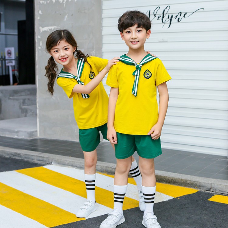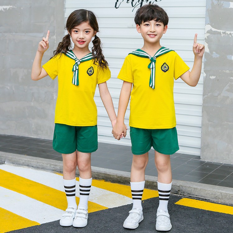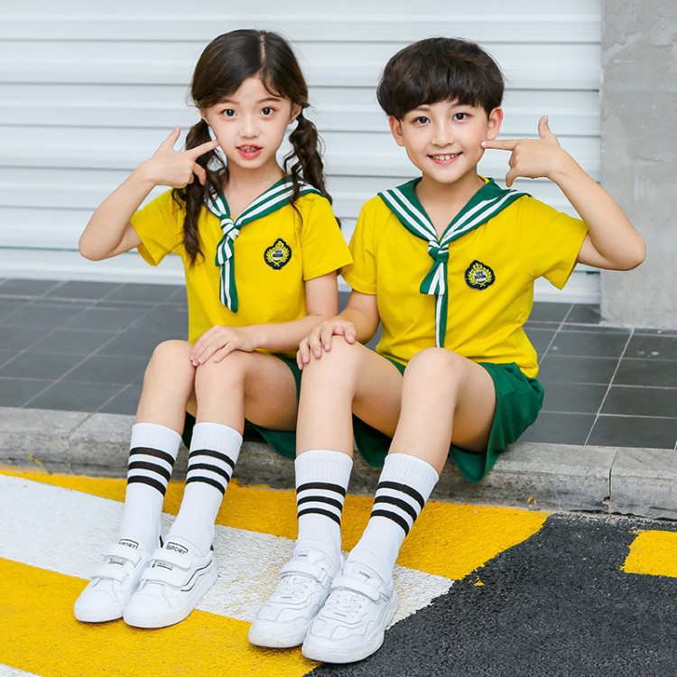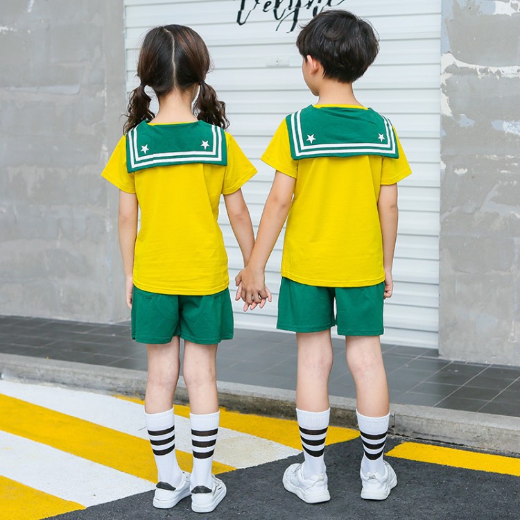 幼儿园园服夏装海军风短袖儿童班服中小学生校服运动服套装毕业服