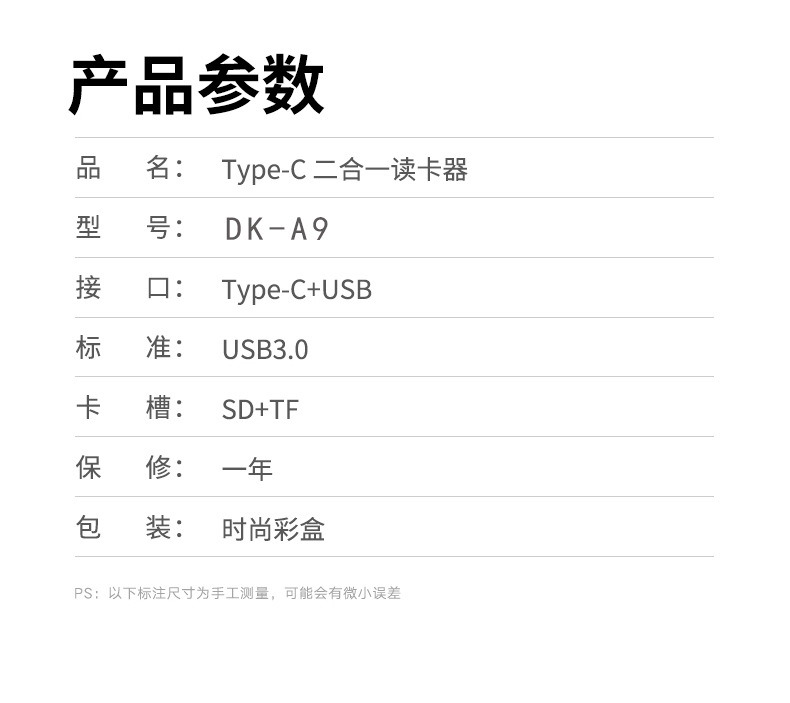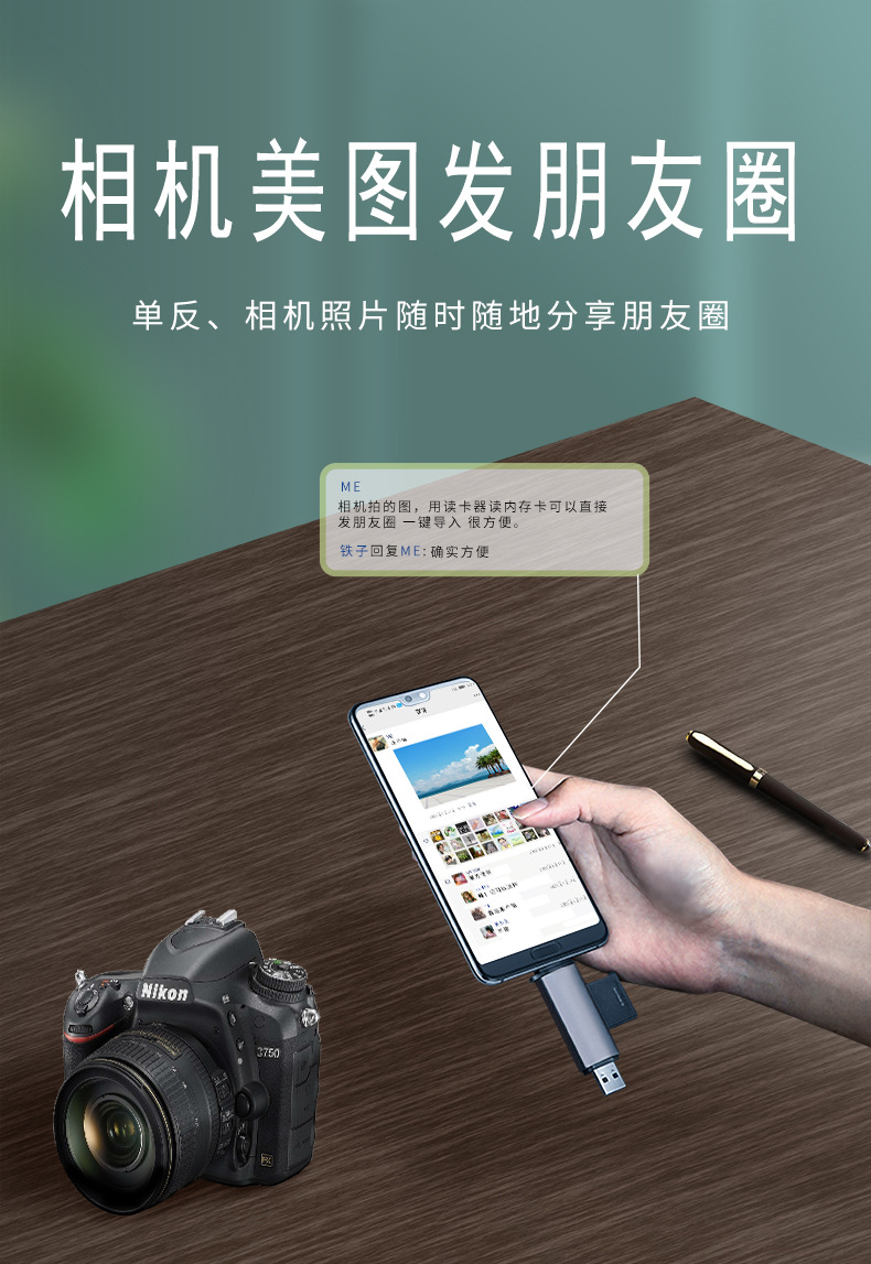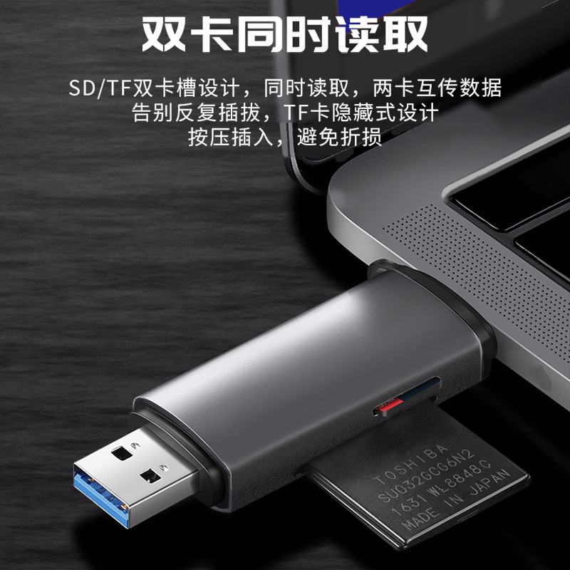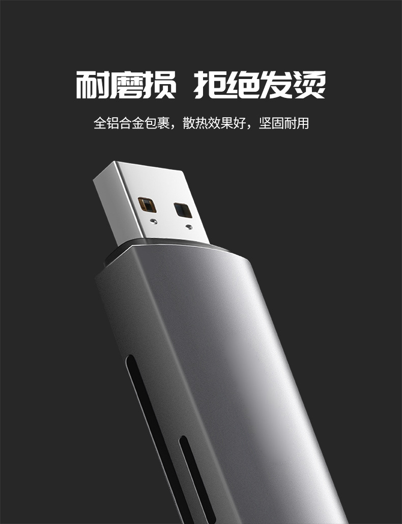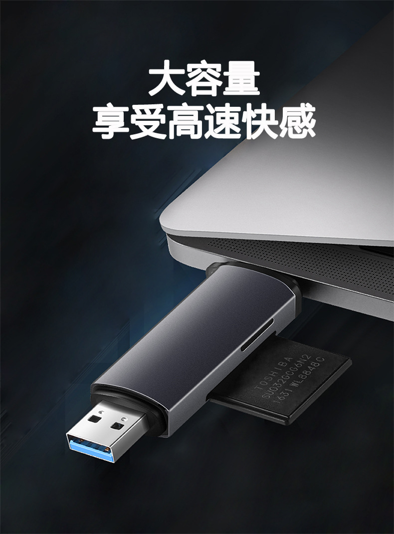 【双卡双读】铝壳款USB3.0+Type-C,高品质3.0读卡器,原厂直销,铝合金材质