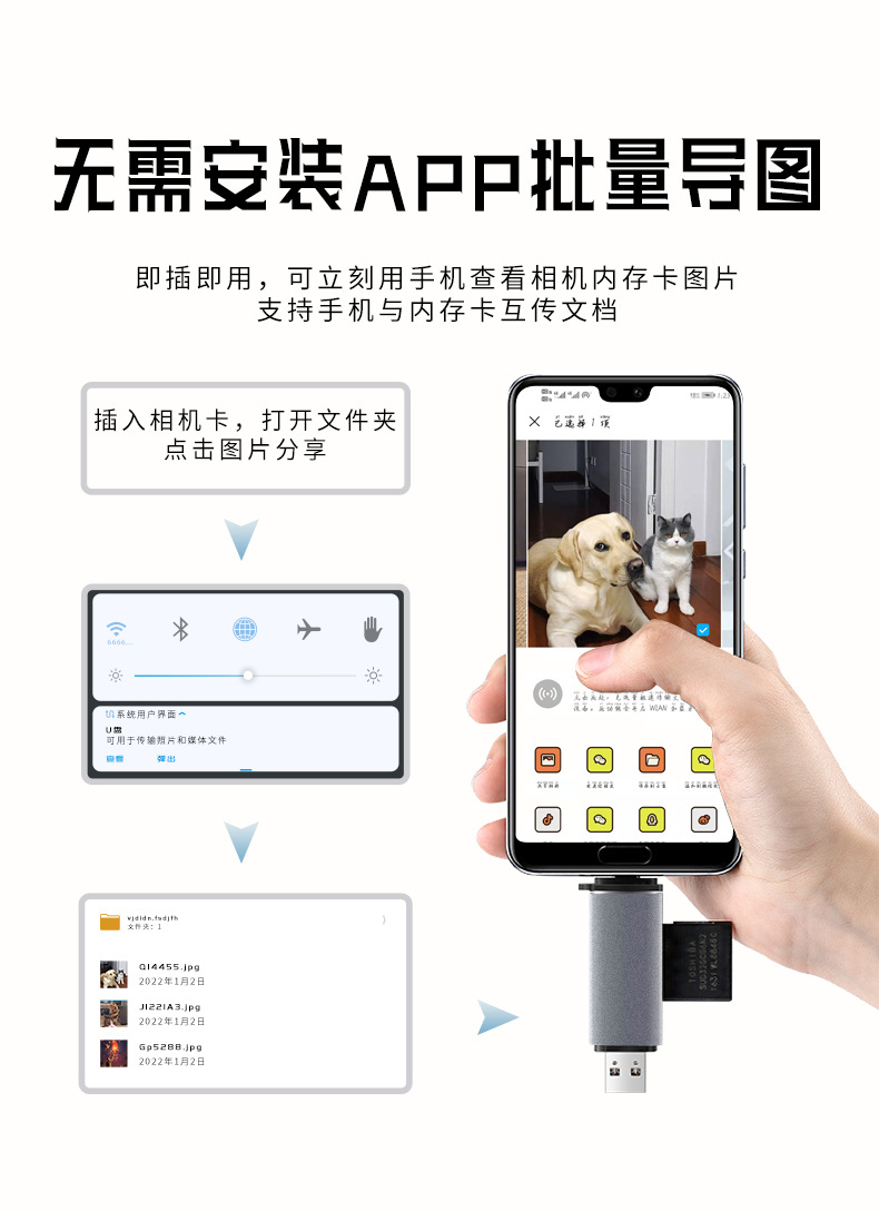 USB3.0读卡器SD卡TF高速type-c读卡器相机电脑手机otg多功能合一