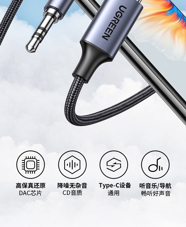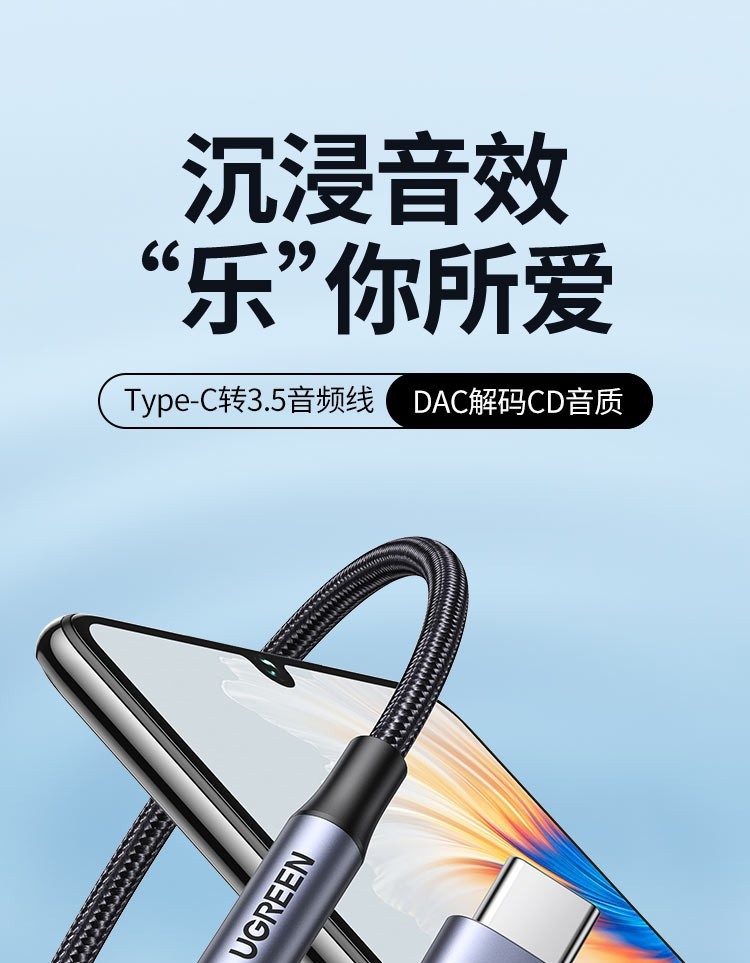 绿联新品 Type-C转3.5MM转接线适用小米11华为P40手机正品保障