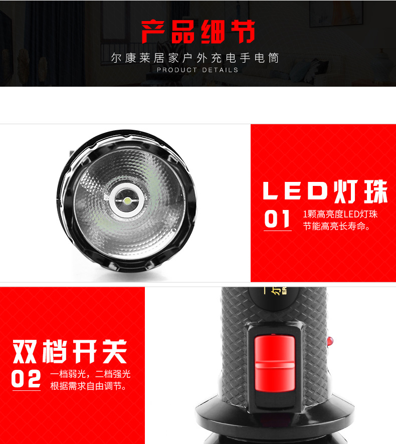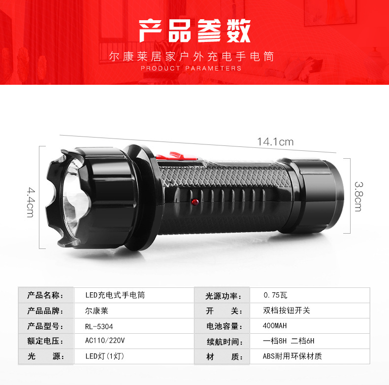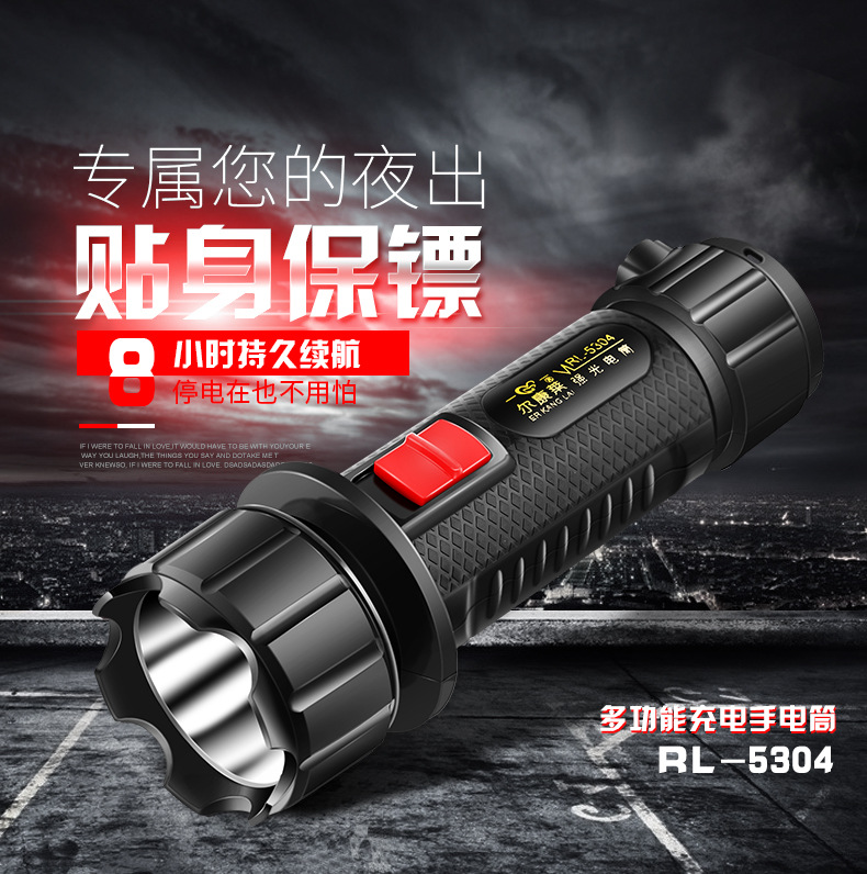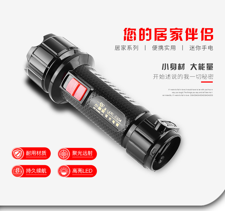 充电式led手电筒 迷你手电应急灯家用户外随身塑料