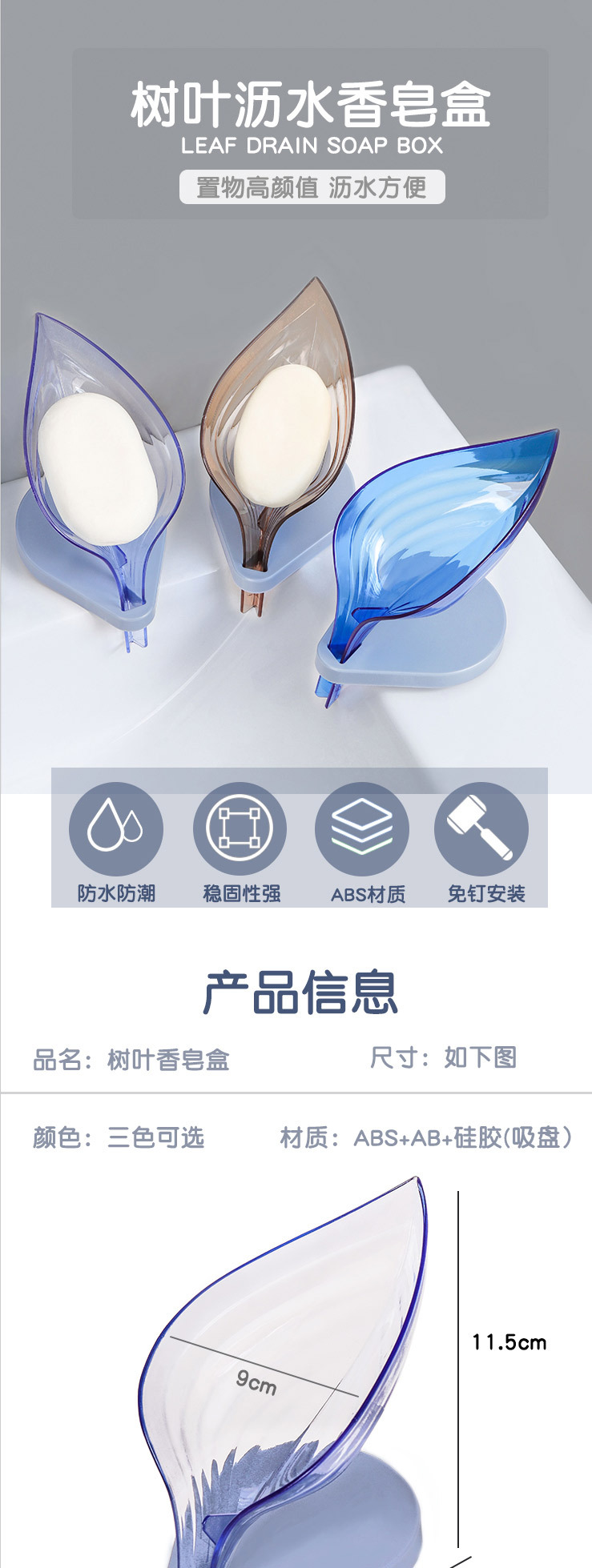 创意吸盘式树叶肥皂盒浴室壁挂式免打孔香皂盒家用多功能沥水皂架