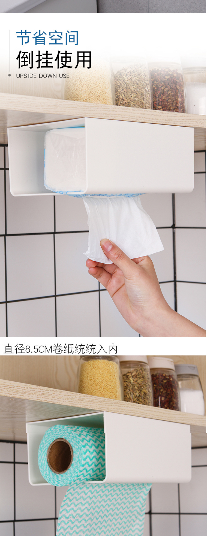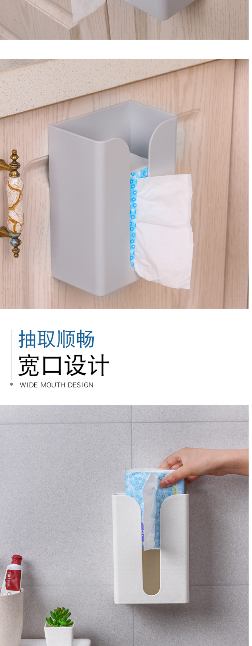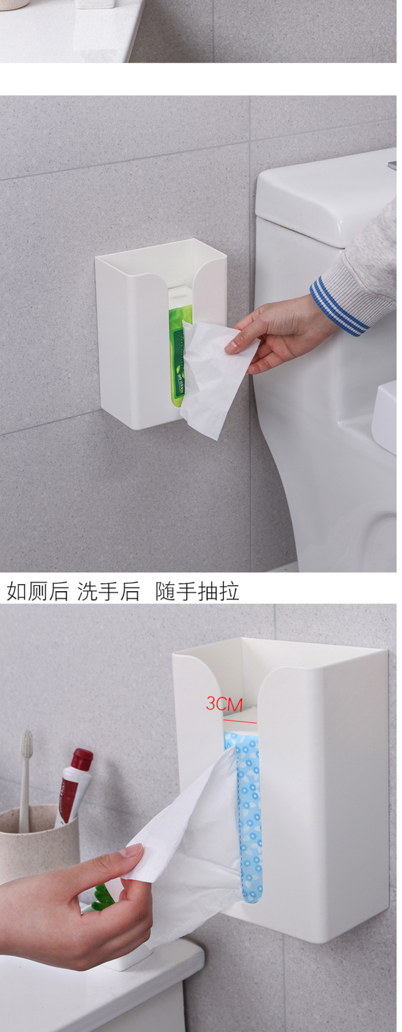 家用免打孔壁挂式纸巾盒厨房无痕倒挂抽纸盒多功能厕所纸巾架