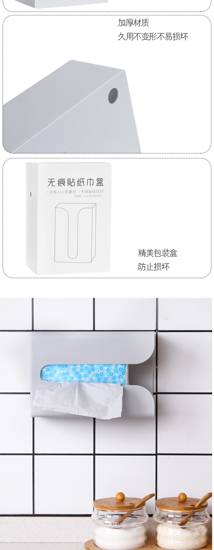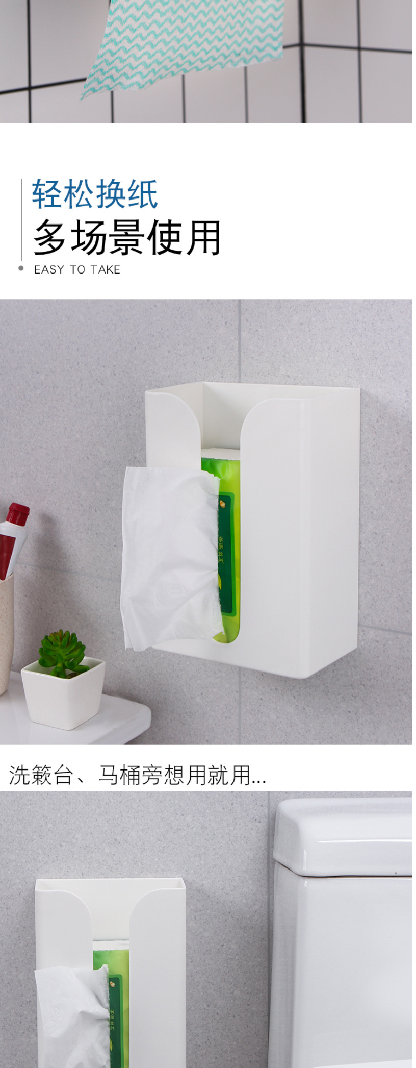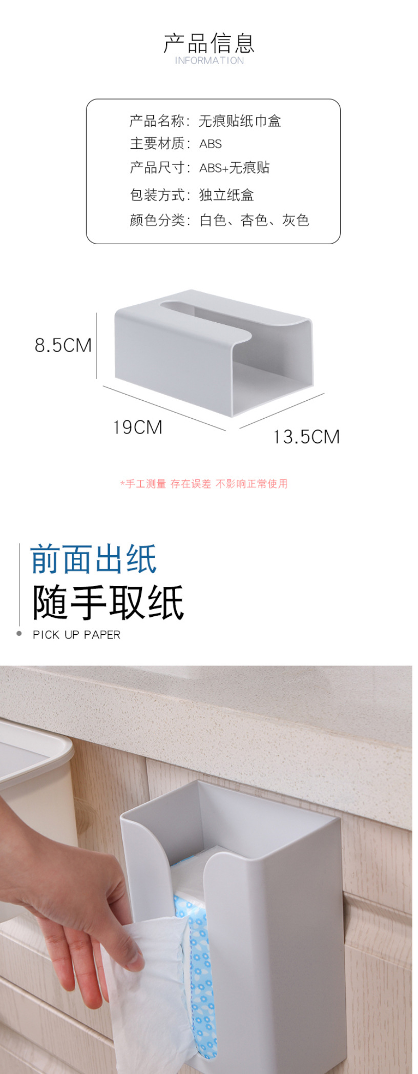 家用免打孔壁挂式纸巾盒厨房无痕倒挂抽纸盒多功能厕所纸巾架
