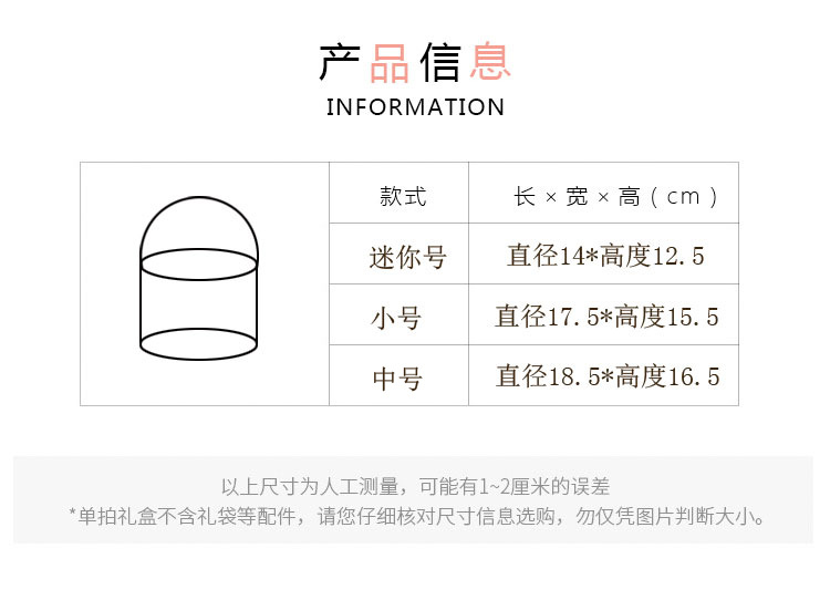 迷你号(14*12.5cm),小号(17.5*15.5cm),中号(18.5*16.5cm)