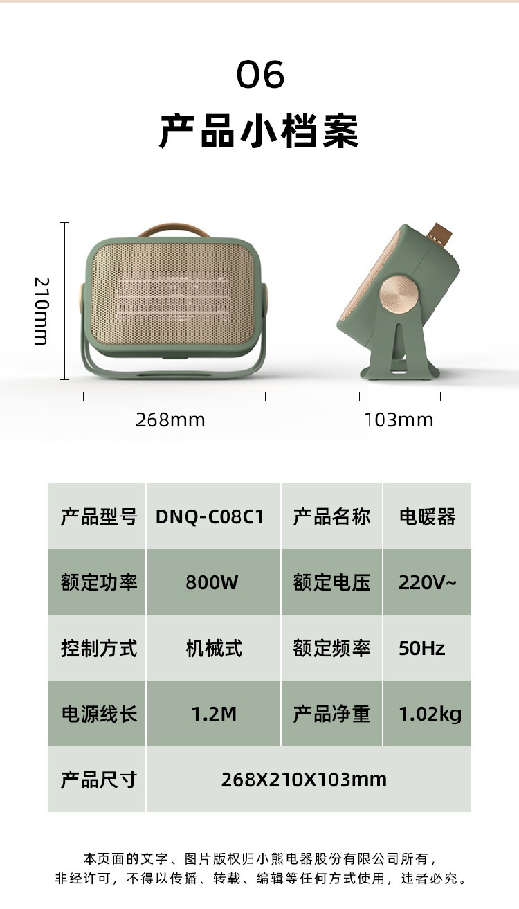 小熊DNQ-C08C1桌面电暖气 家用小型暖风机 办公室卧室热风机