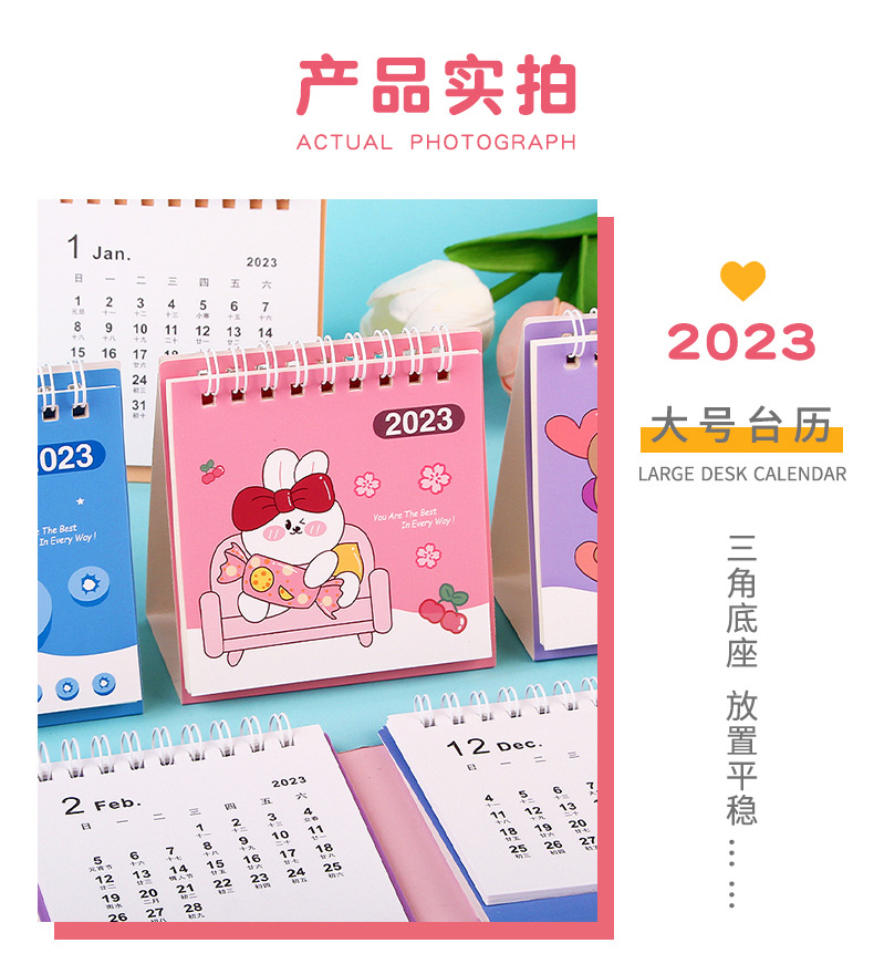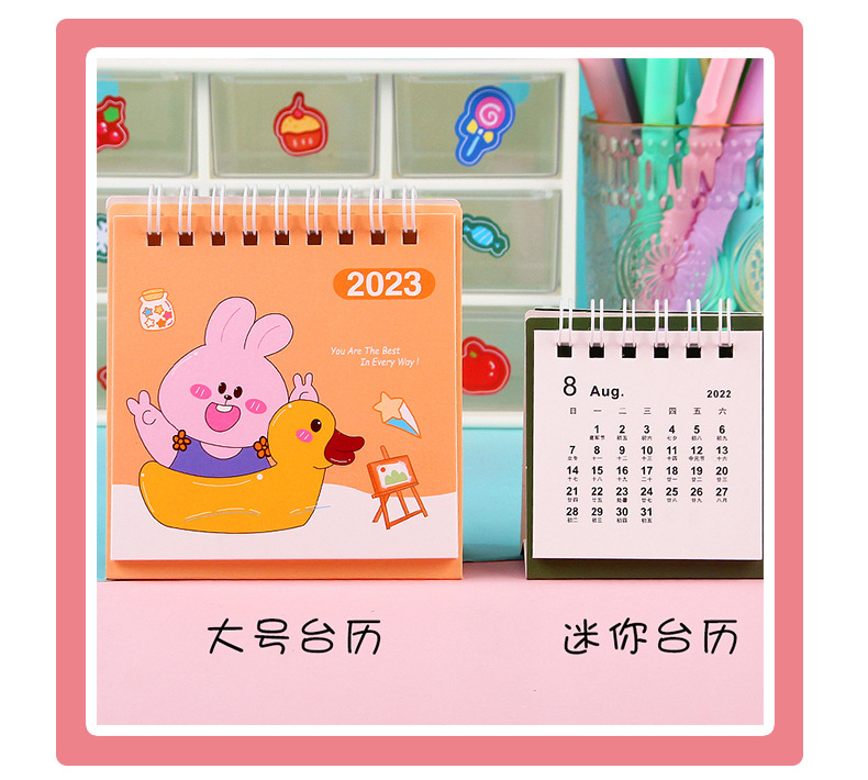 2023年兔年大号台历简约卡通新款桌面日历可爱动物ins高颜值年历