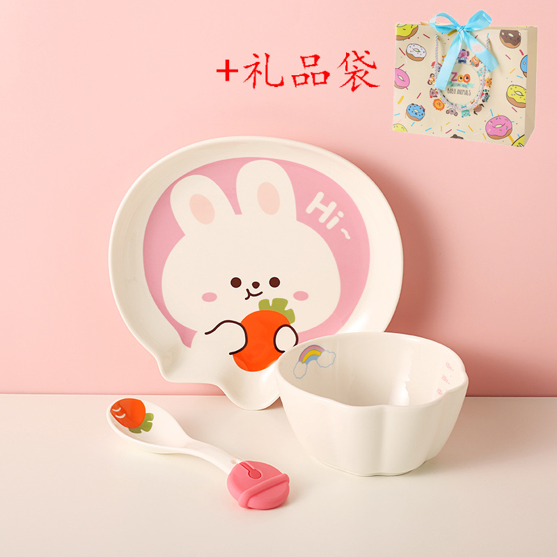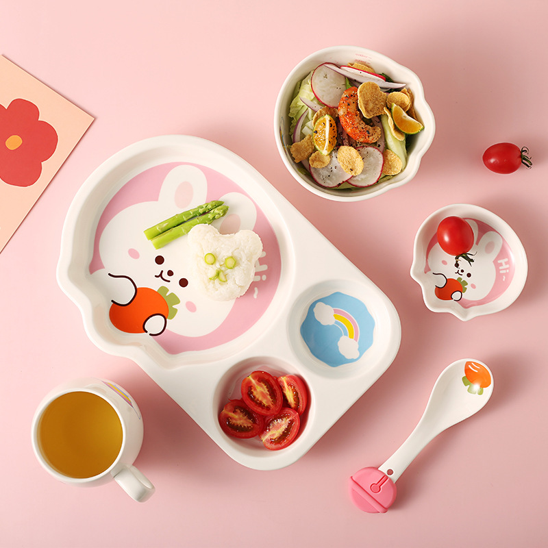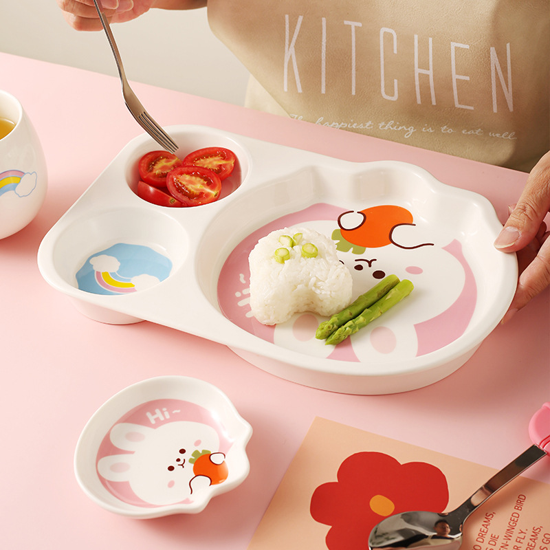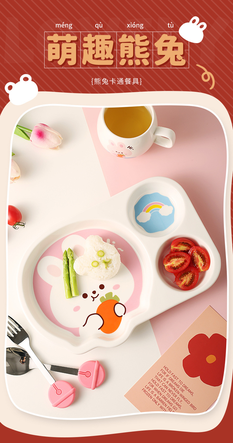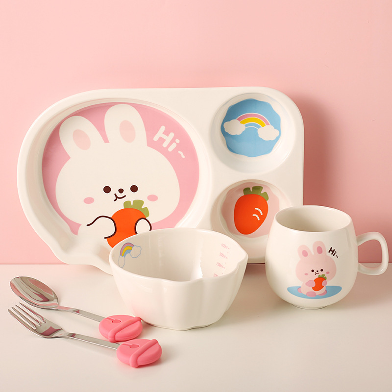 陶瓷餐具套装可爱兔子儿童餐盘一人份杯碗创意分格盘早餐盘