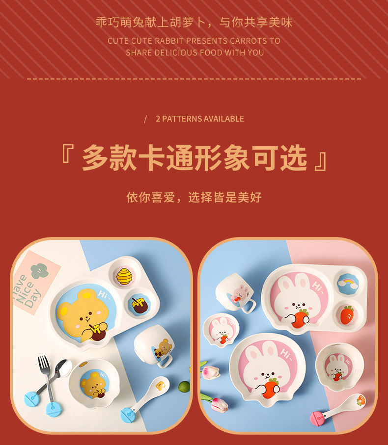 兔子三件套(碗盘勺),兔子四件套(碗盘叉勺啊),兔子四件套(碗格盘杯勺),兔子五件套(碗格盘杯叉勺),小熊四件套(碗格盘杯勺),小熊五件套(碗格盘杯叉勺),兔子三件套(碗盘勺)+礼品袋,兔子四件套(碗格盘杯勺)+礼品袋,小熊四件套(碗格盘杯勺)+礼品袋