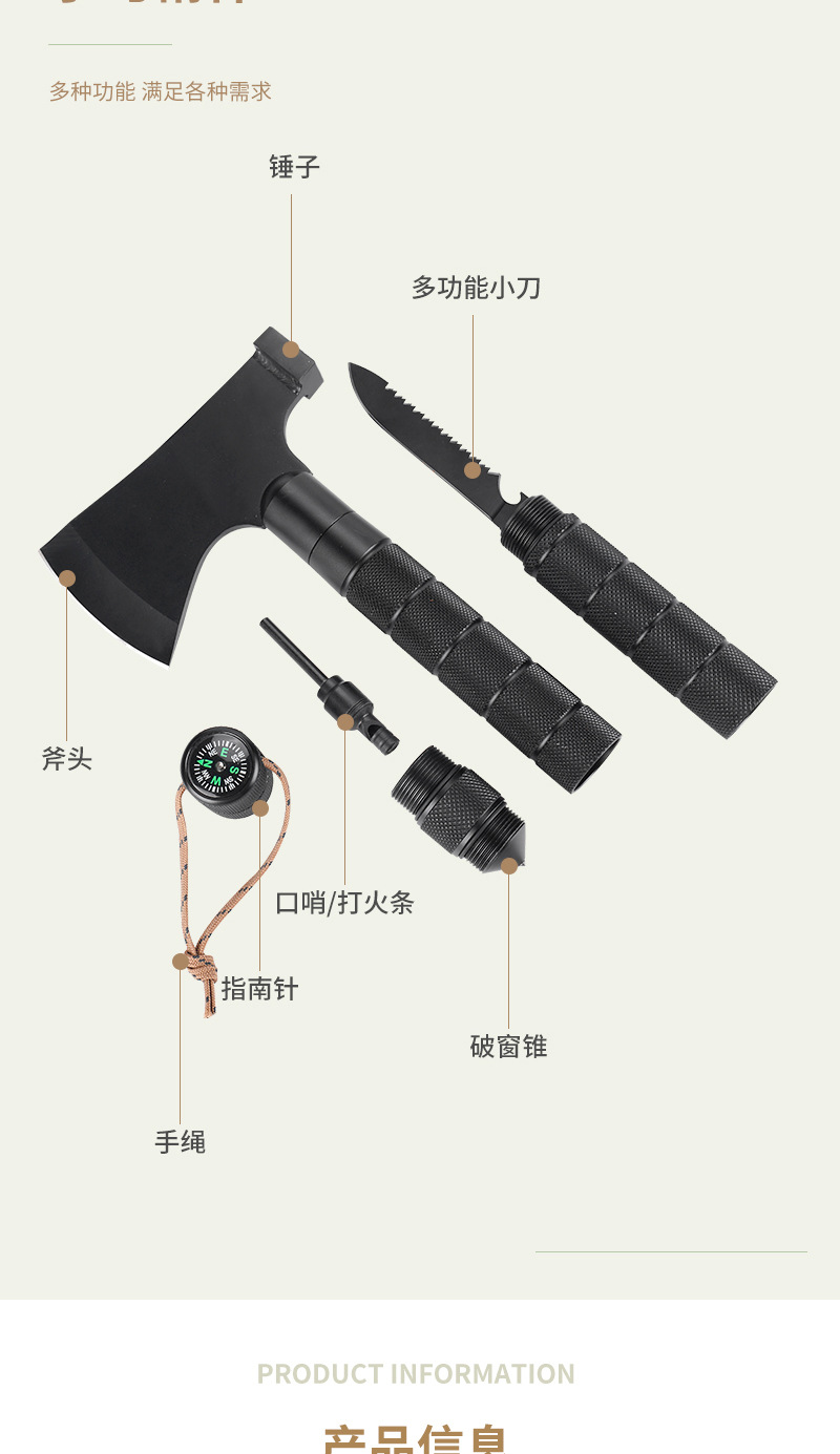 户外多功能斧头套装野营大号工兵斧头砍树斧安全锤野外求生战术斧