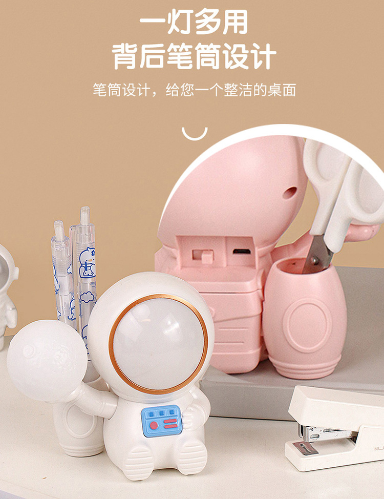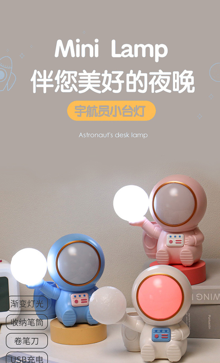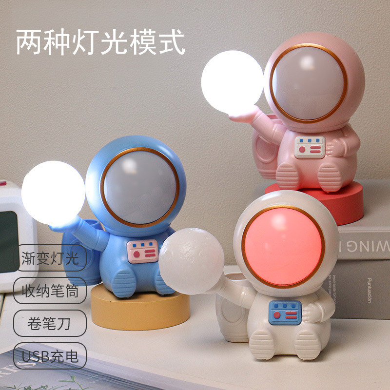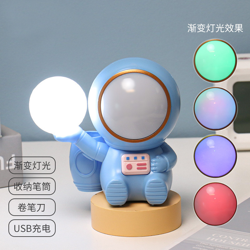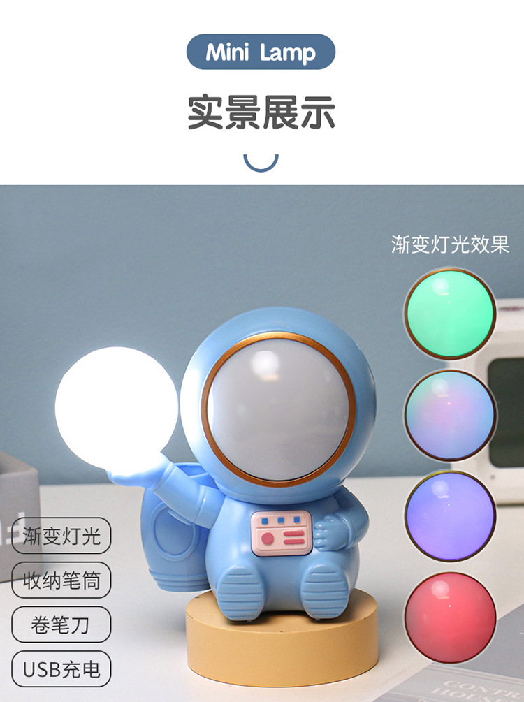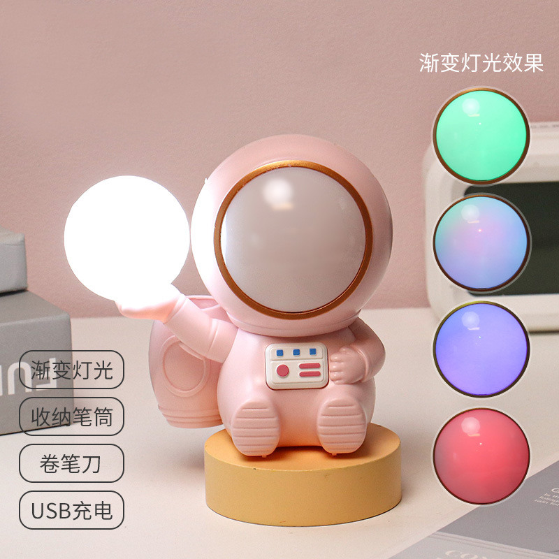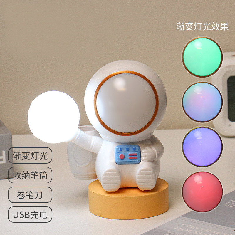 高颜值宇航员桌面迷你渐变彩灯桌面充电台灯卷笔刀收纳笔筒可爱灯